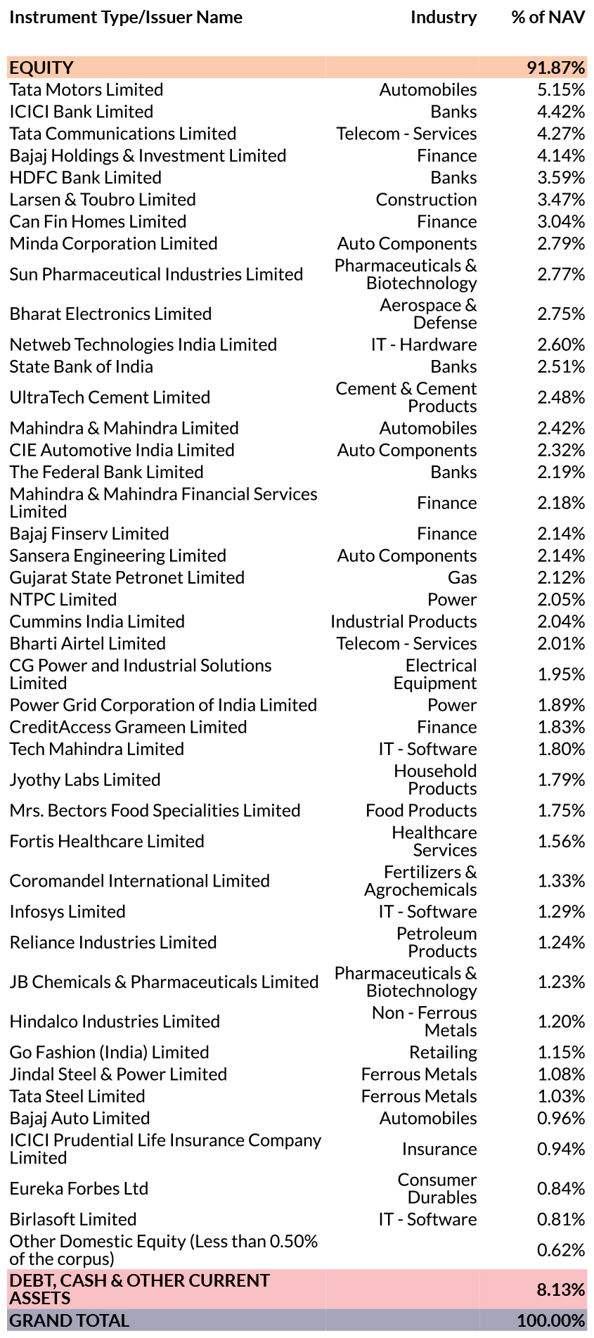 To generate consistent long-term capital appreciation by investing predominantly in equity and equity related securities by following value investing strategy. However, there can be no assurance that the investment objective of the Scheme will be achieved.