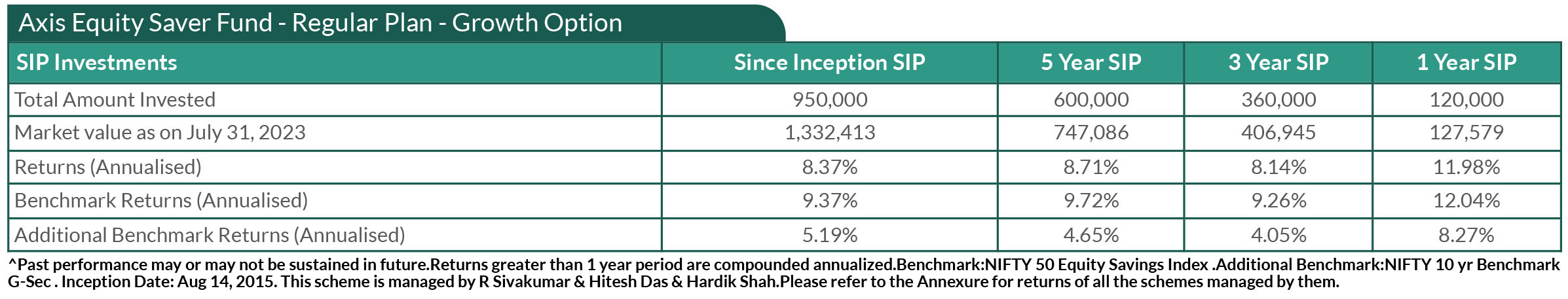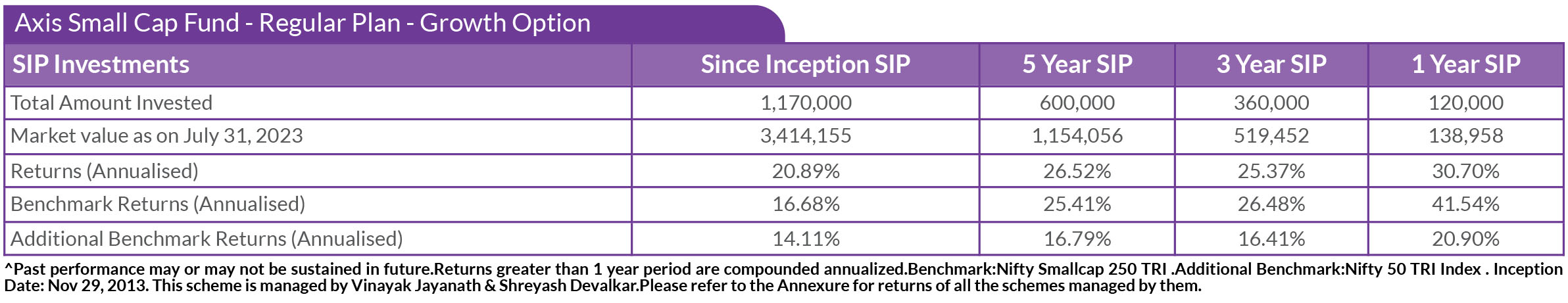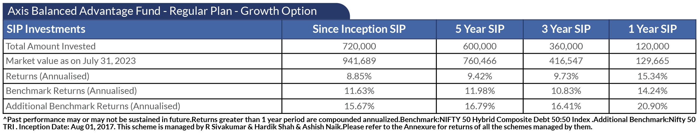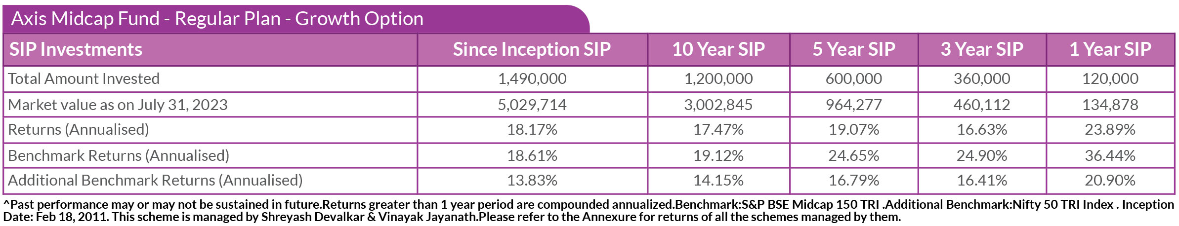 SIP PERFORMANCE OF SELECT SCHEMES (as on 31st July, 2023)