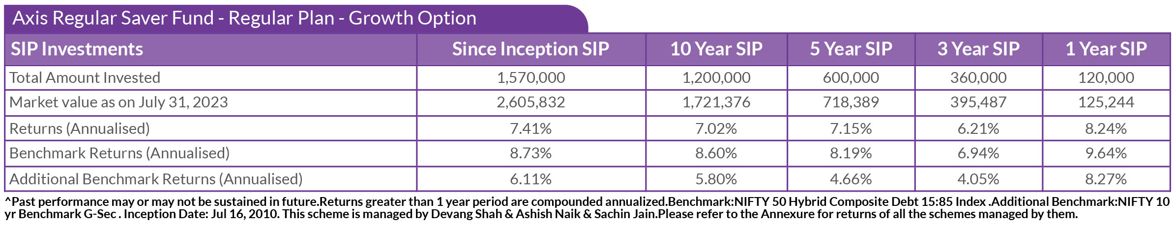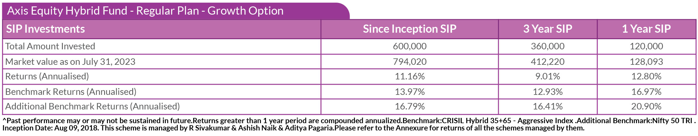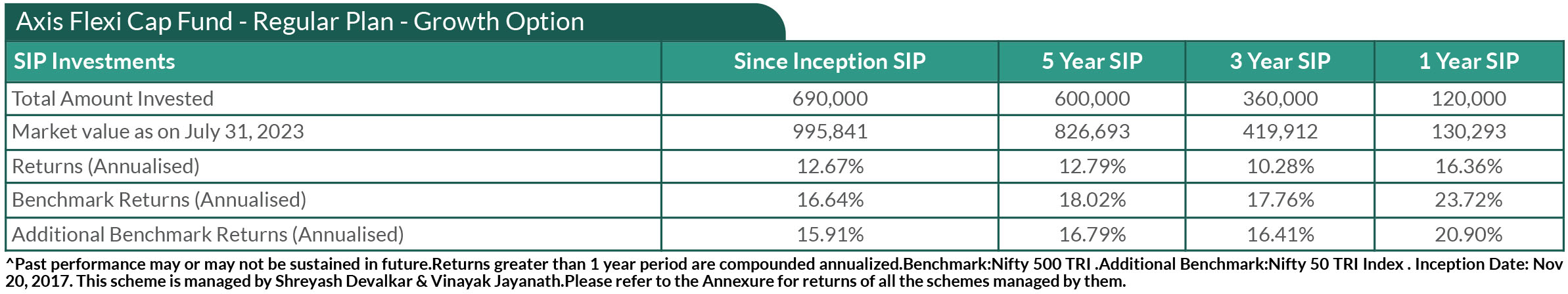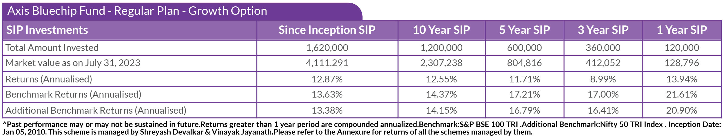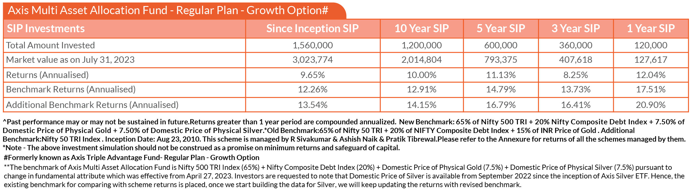SIP PERFORMANCE OF SELECT SCHEMES (as on 31st July, 2023)