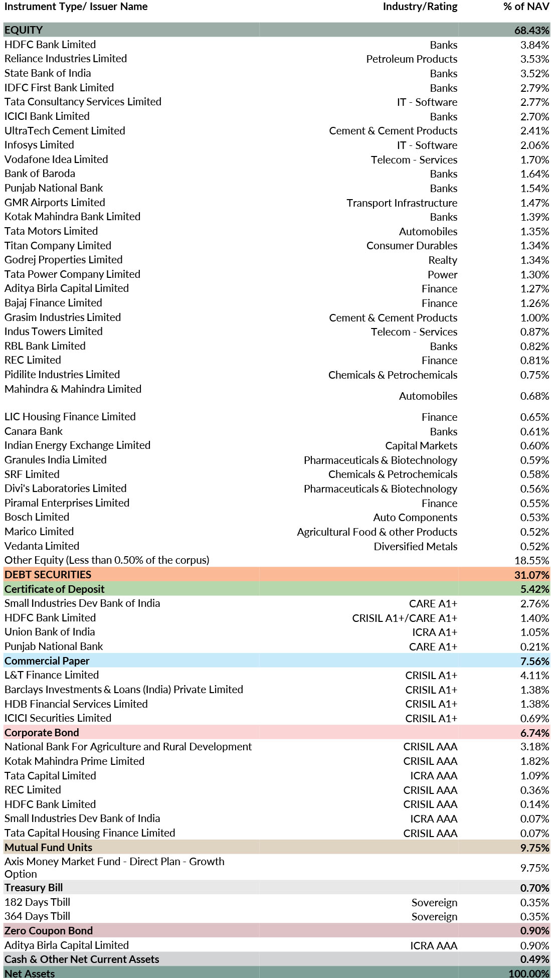 it will be annualised *As per AMFI Best Practices Guidelines Circular No. 88 / 2020 -21-Additional Disclosures in Monthly Factsheets. @ Based on debt portfolio only. For instruments with put/call option, the put/call date has been taken as the maturity date. This should not be taken as an indication of the returns that maybe generated by the fund and the securities bought by the fund may or may not be held till their respective maturities. The calculation is based on the invested corpus of the debt portfolio. | ||