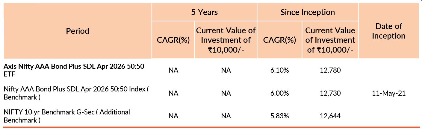 Axis Nifty AAA Bond Plus SDL Apr 2026 50:50 ETF | 30-Jun-2025 | -0.02 | -0.18 | -- | -- | 0.1 |