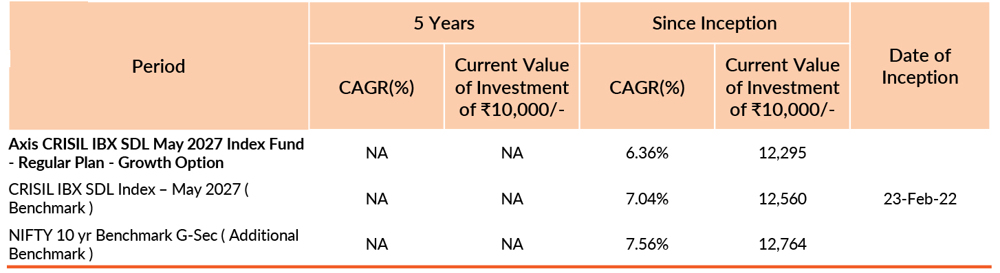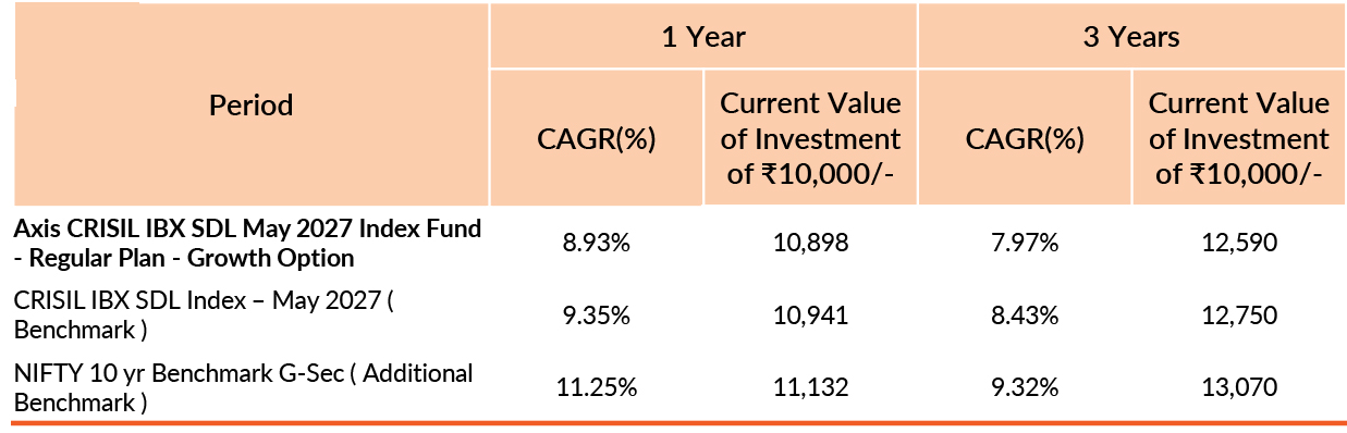 Axis CRISIL IBX SDL May 2027 Index Fund | 30-Jun-2025 | -0.42 | -0.45 | - | - | -0.68 |