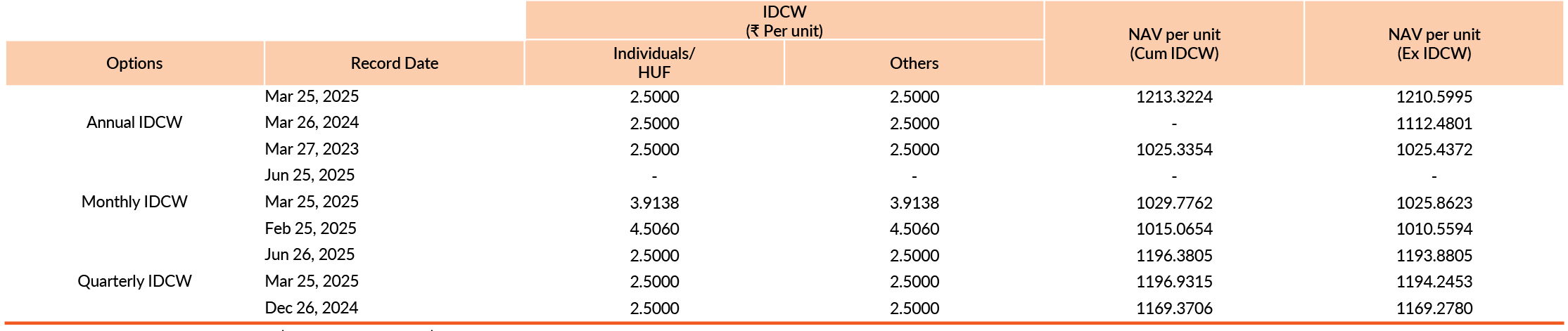 levy, if any. Past performance may or may not be sustained in future. Face value of units is ₹1000. IDCW means Income Distribution cum Capital Withdrawal.