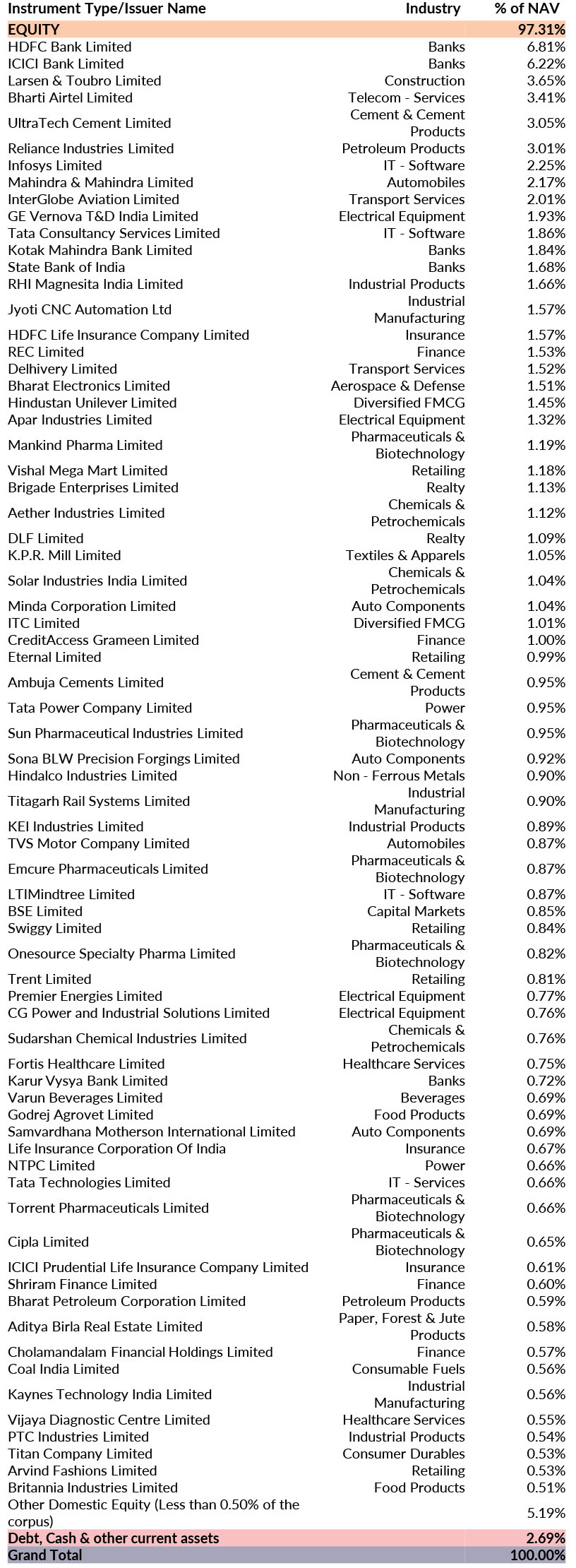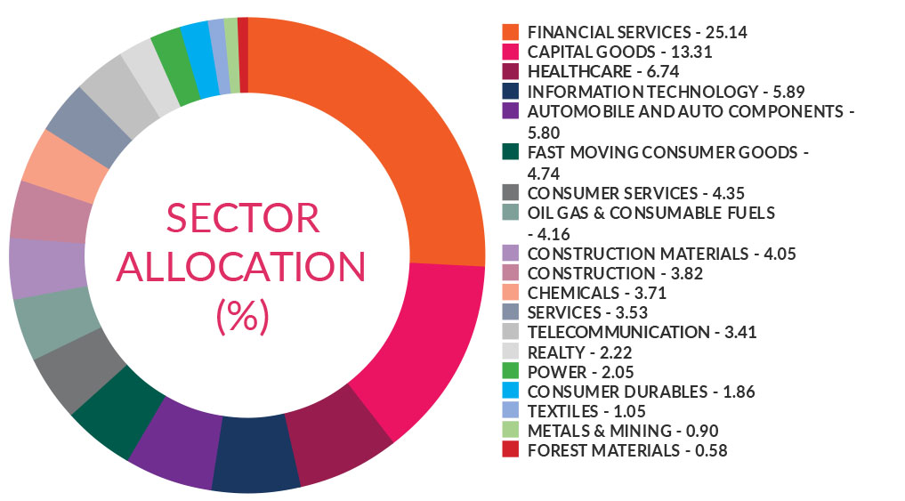 ^^Market caps are defined as per SEBI regulations as below: a. Large Cap: 1st -100th company in terms of full market capitalization. b. Mid Cap: 101st -250th company in terms of full market capitalization. c. Small Cap: 251st company onwards in terms of full market capitalization.