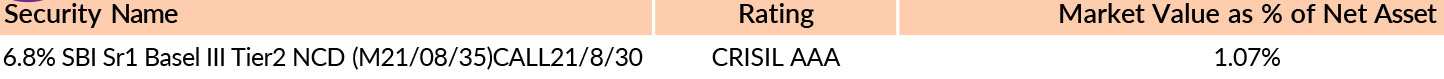 *in case of semi annual YTM, it will be annualised *As per AMFI Best Practices Guidelines Circular No. 88 / 2020 -21-Additional Disclosures in Monthly Factsheets.@ Based on debt portfolio only. For instruments with put/call option, the put/call date has been taken as the maturity date. This should not be taken as an indication of the returns that maybe generated by the fund and the securities bought by the fund may or may not be held till their respective maturities. | ||