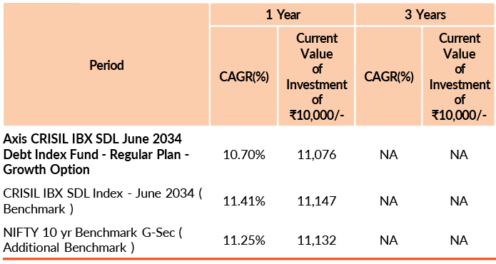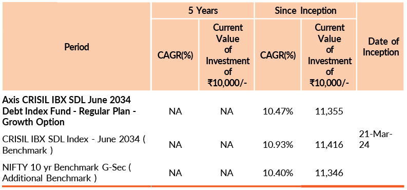 Axis CRISIL IBX SDL June 2034 Debt Index Fund | 30-Jun-2025 | -0.71 | - | - | - | -0.46 |