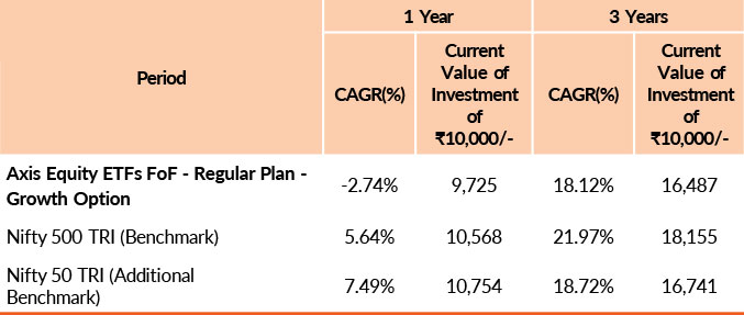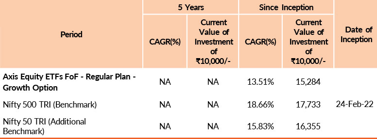 Past performance may or may not be sustained in future.Different plans have different expense structure. Karthik Kumar is managing the scheme since 3rd August 2023 and he manages 23 schemes of Axis Mutual Fund .Please refer to annexure for performance of all schemes managed by the fund manager. Returns greater than 1 year period are compounded annualised (CAGR). Face Value per unit : ₹ 10.