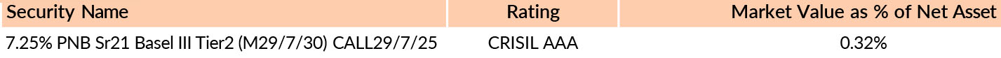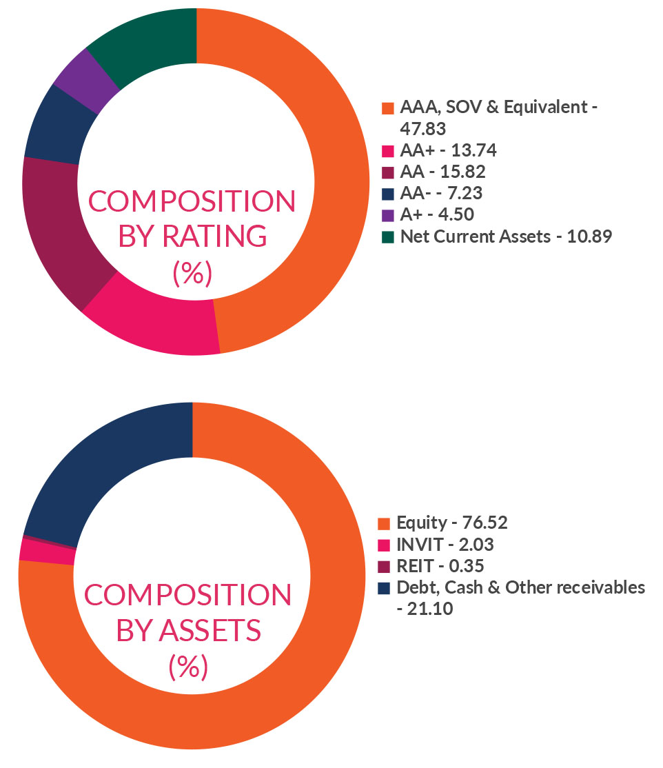 *in case of semi annual YTM, it will be annualised *As per AMFI Best Practices Guidelines Circular No. 88 / 2020 -21-Additional Disclosures in Monthly Factsheets. @ Based on debt portfolio only. For instruments with put/call option, the put/call date has been taken as the maturity date. This should not be taken as an indication of the returns that maybe generated by the fund and the securities bought by the fund may or may not be held till their respective maturities. The calculation is based on the invested corpus of the debt portfolio. | ||