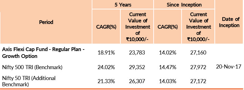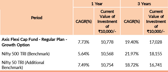 Past performance may or may not be sustained in future.Different plans have different expense structure. Sachin Relekar is managing the scheme since 1st February 2024 and he manages 3 schemes of Axis Mutual Fund & Krishnaa N is managing the scheme since 1st March 2024 and she manages 23 schemes of Axis Mutual Fund .Please refer to annexure for performance of all schemes managed by the fund manager. Returns greater than 1 year period are compounded annualised (CAGR). Face Value per unit : ₹ 10.
