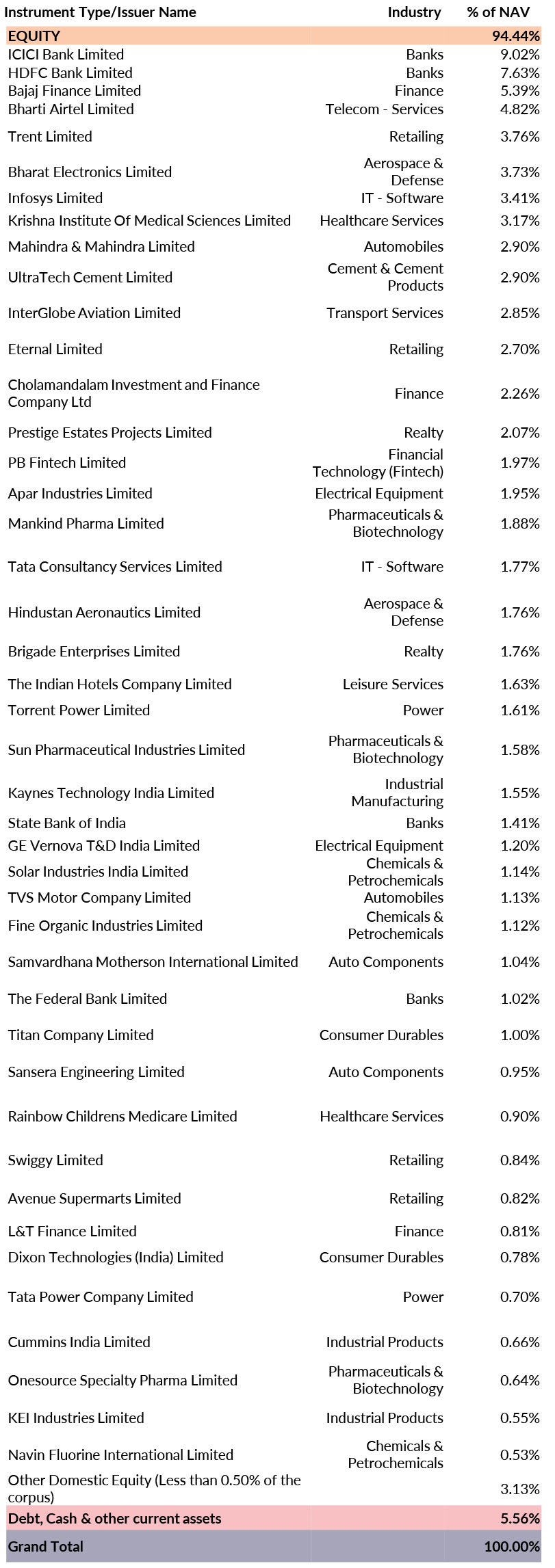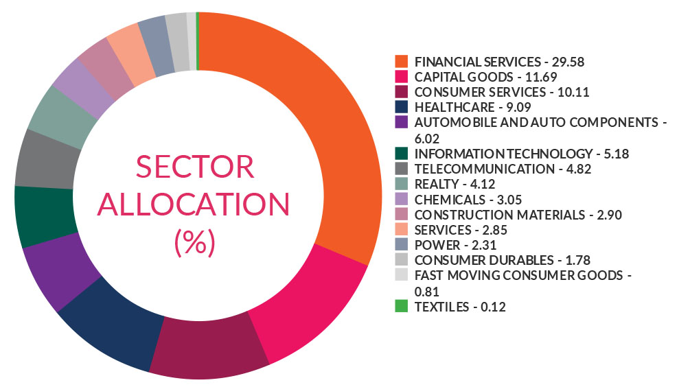 ^^Market caps are defined as per SEBI regulations as below: a. Large Cap: 1st -100th company in terms of full market capitalization. b. Mid Cap: 101st -250th company in terms of full market capitalization. c. Small Cap: 251st company onwards in terms of full market capitalization.