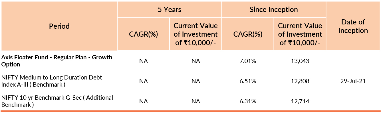 Past performance may or may not be sustained in future. Different plans have different expense structure. Aditya Pagaria is managing the scheme since 29th July 2021 and he manages 21 schemes of Axis Mutual Fund & Hardik Shah is managing the scheme since 31st January 2022 and he manages 18 schemes of Axis Mutual Fund . Please refer to annexure for performance of all schemes managed by the fund manager. Returns greater than 1 year period are compounded annualised (CAGR). Face Value per unit : ₹ 1000.