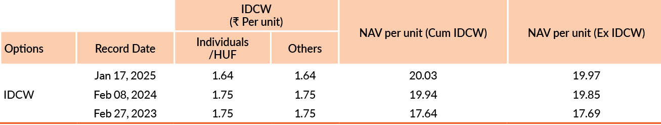 Face value of units is ₹ 10. IDCW means Income Distribution cum Capital Withdrawal.