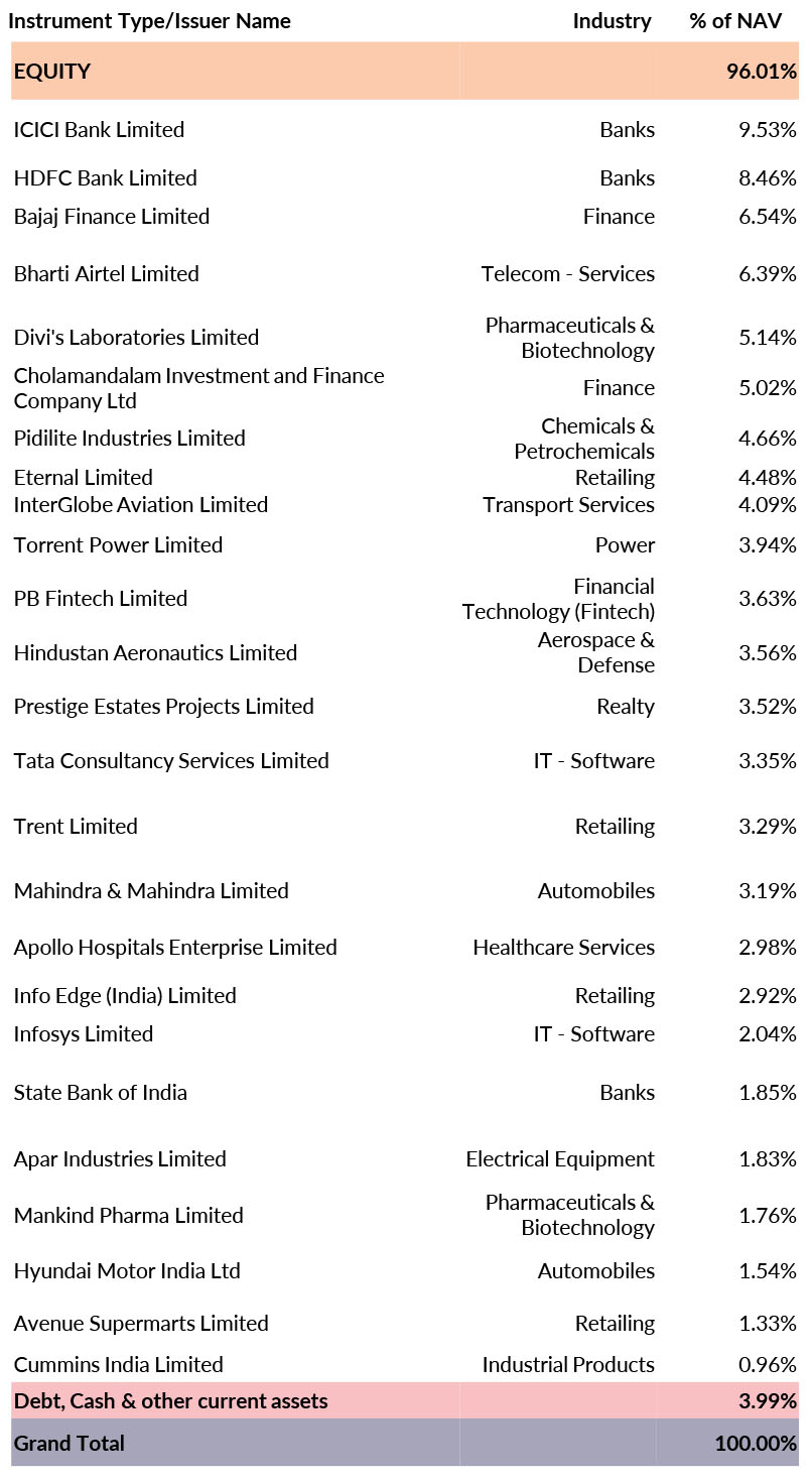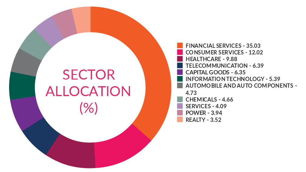 ^^Market caps are defined as per SEBI regulations as below: a. Large Cap: 1st -100th company in terms of full market capitalization. b. Mid Cap: 101st -250th company in terms of full market capitalization. c. Small Cap: 251st company onwards in terms of full market capitalization. | ||