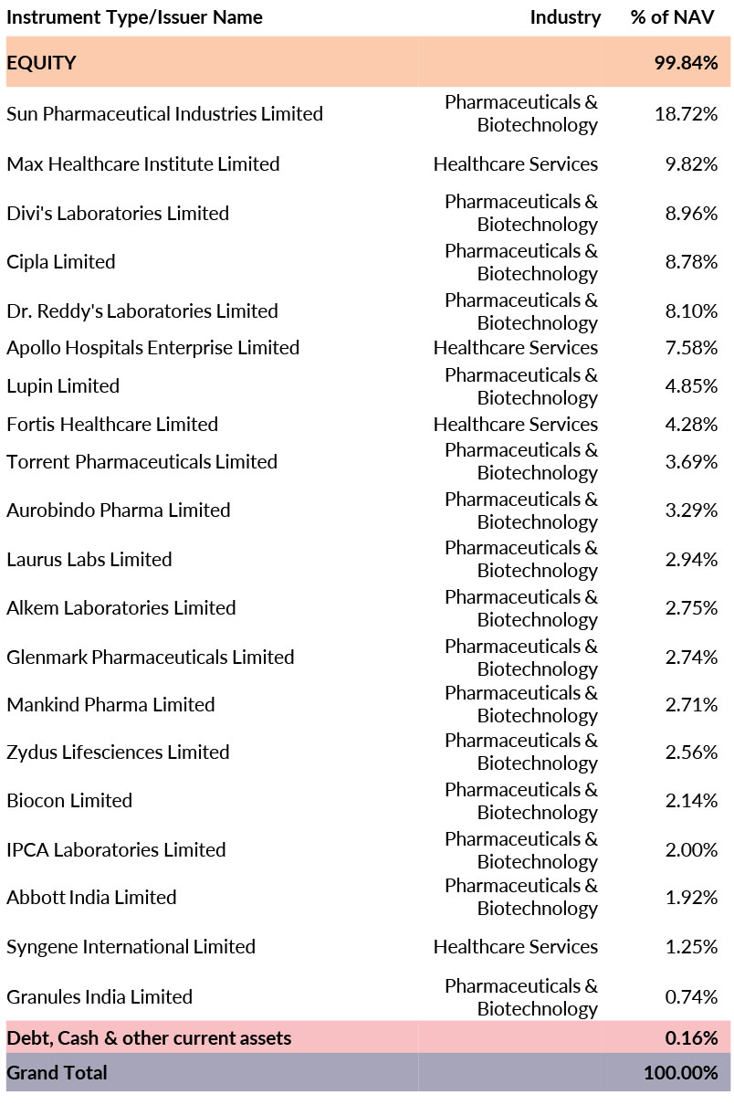 The investment objective of the Scheme is to provide returns before expenses that closely correspond to the total returns of the NIFTY Healthcare Index subject to tracking errors. There is no assurance that the investment objective of the Scheme will be achieved.