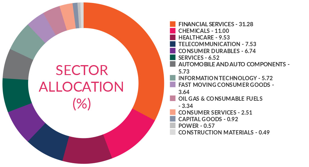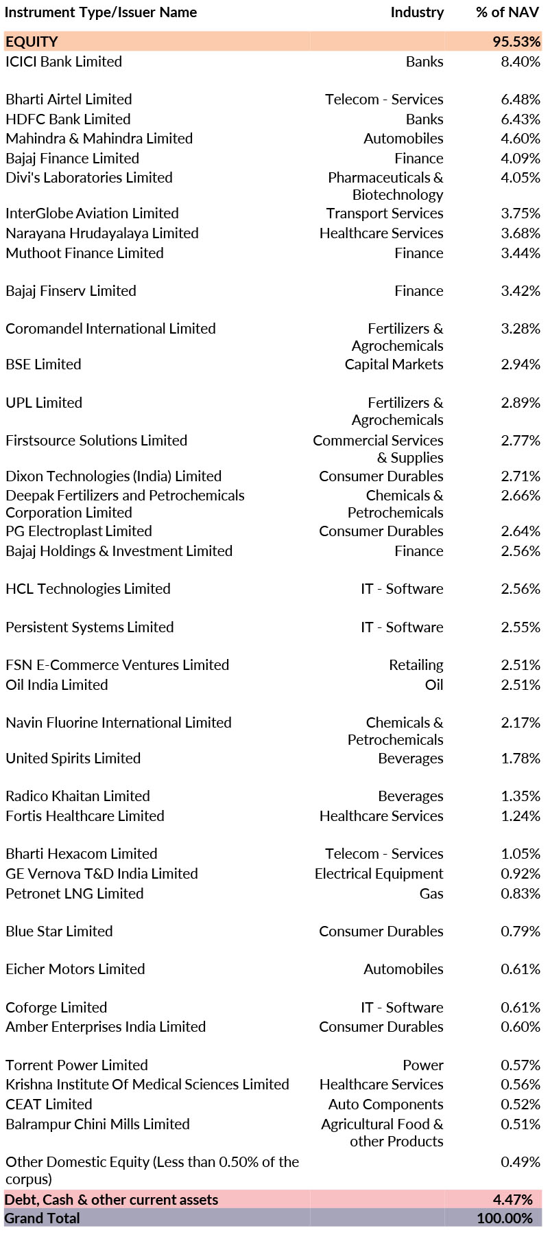 ^^Market caps are defined as per SEBI regulations as below: a. Large Cap: 1st -100th company in terms of full market capitalization. b. Mid Cap: 101st -250th company in terms of full market capitalization. c. Small Cap: 251st company onwards in terms of full market capitalization.