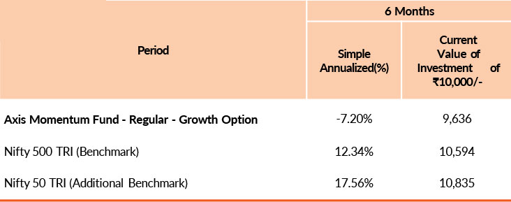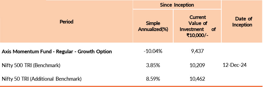 Past performance may or may not be sustained in future. Different plans have different expense structure. Karthik Kumar is managing the scheme since 12th December 2024 and he manages 23 schemes of Axis Mutual Fund & Mayank Hyanki is managing the scheme since 12th December 2024 and he manages 3 schemes of Axis Mutual Fund . Please refer to annexure for performance of all schemes managed by the fund manager. Returns greater than 1 year period are compounded annualised (CAGR). Face Value per unit : ₹ 10.