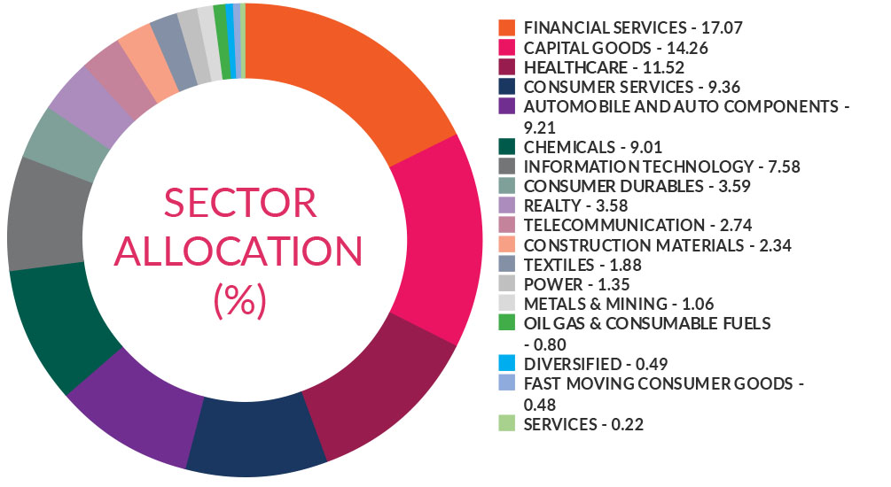 ^^Market caps are defined as per SEBI regulations as below: a. Large Cap: 1st -100th company in terms of full market capitalization. b. Mid Cap: 101st -250th company in terms of full market capitalization. c. Small Cap: 251st company onwards in terms of full market capitalization.