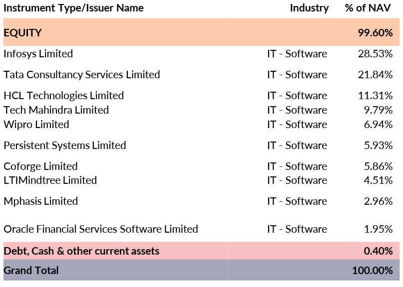 To provide returns before expenses that closely correspond to the total returns of the NIFTY IT TRI subject to tracking errors.There is no assurance that the investment objective of the scheme will be achieved.