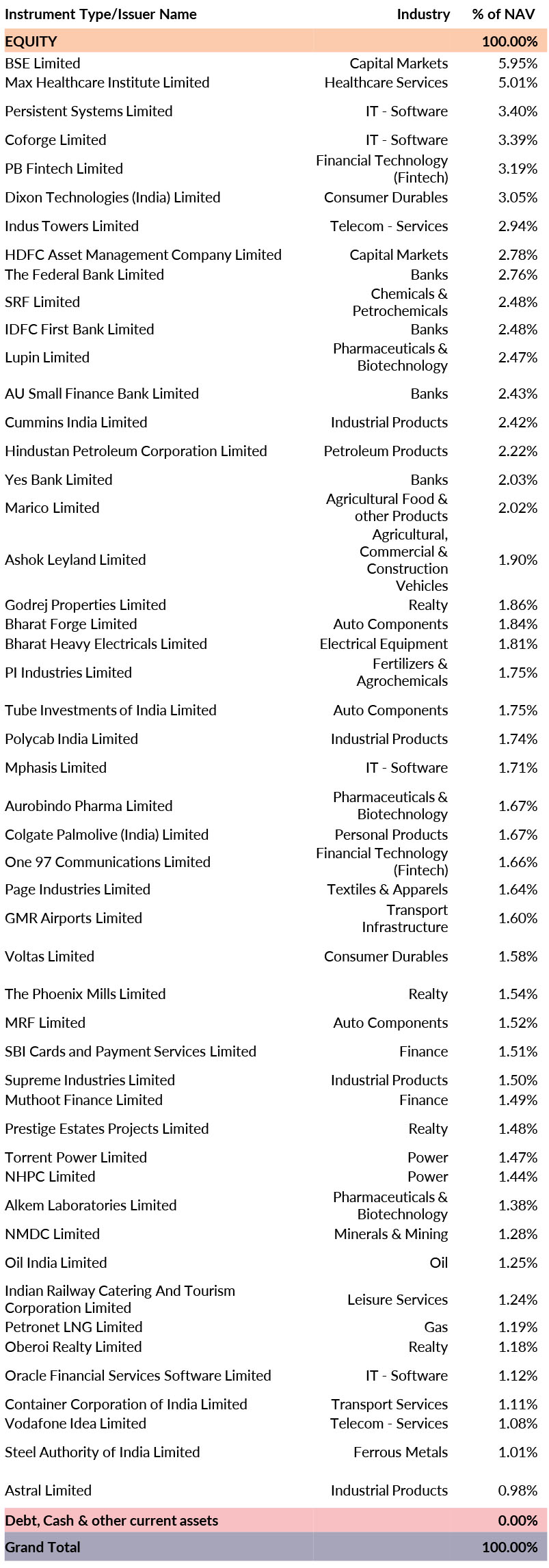 (An Open Ended Index Fund tracking the NIFTY MIDCAP 50 Index)