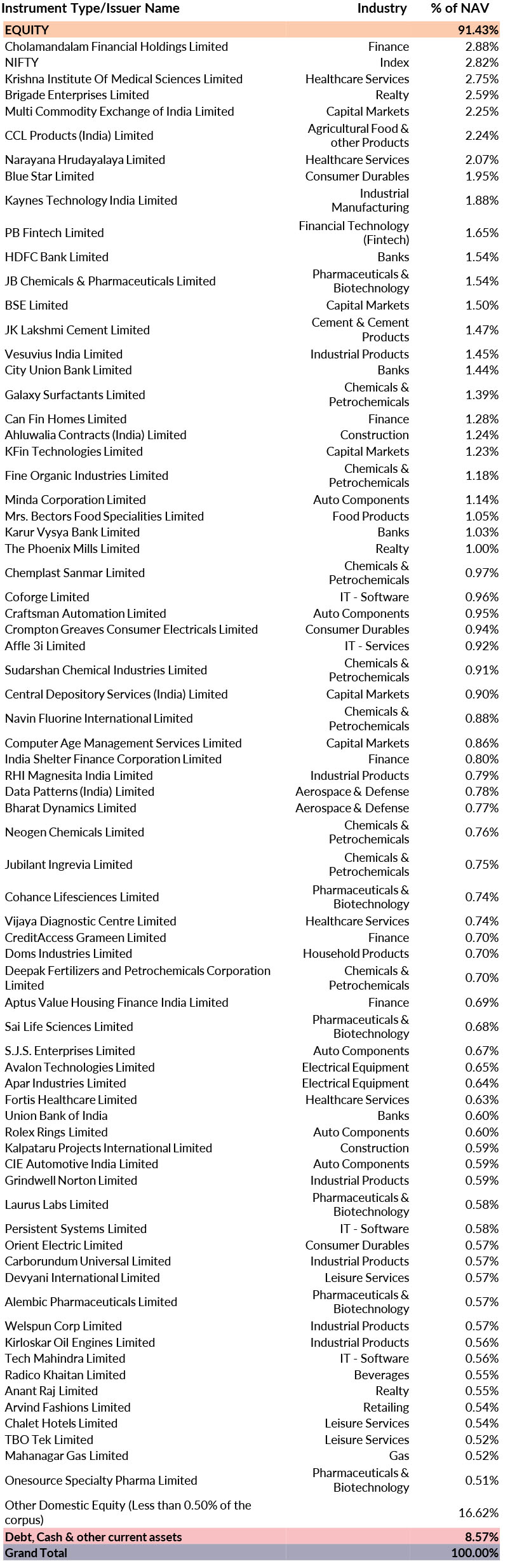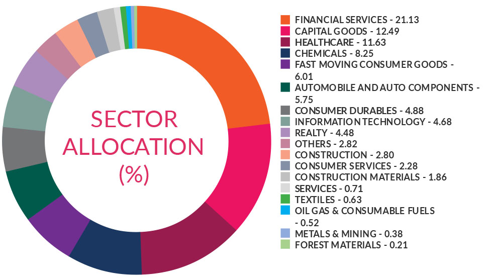 ^^Market caps are defined as per SEBI regulations as below: a. Large Cap: 1st -100th company in terms of full market capitalization. b. Mid Cap: 101st -250th company in terms of full market capitalization. c. Small Cap: 251st company onwards in terms of full market capitalization.