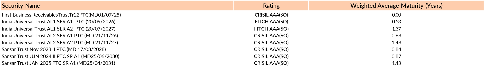 * As per AMFI Best Practices Guidelines Circular No. 88 / 2020 -21-Additional Disclosures in Monthly Factsheets. For instruments with put/call option, the put/call date has been taken as the maturity date. This should not be taken as an indication of the returns that maybe generated by the fund and the securities bought by the fund may or may not be held till their respective maturities. The calculation is based on the invested corpus of the debt portfolio. | ||