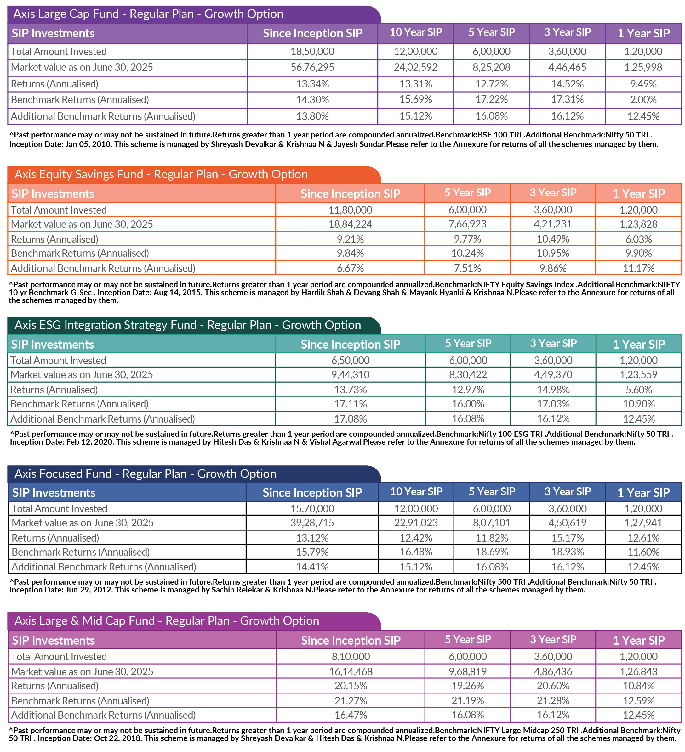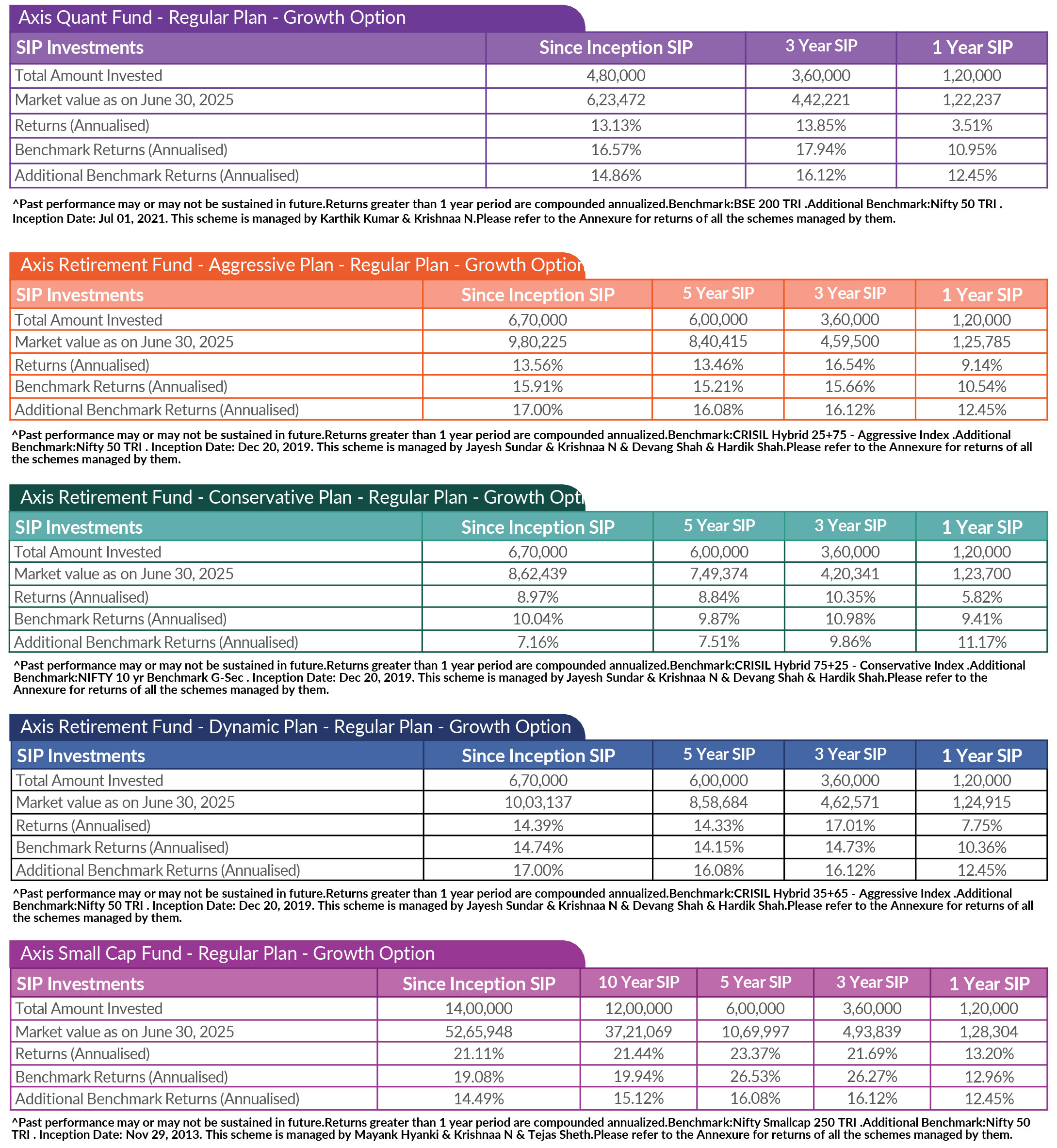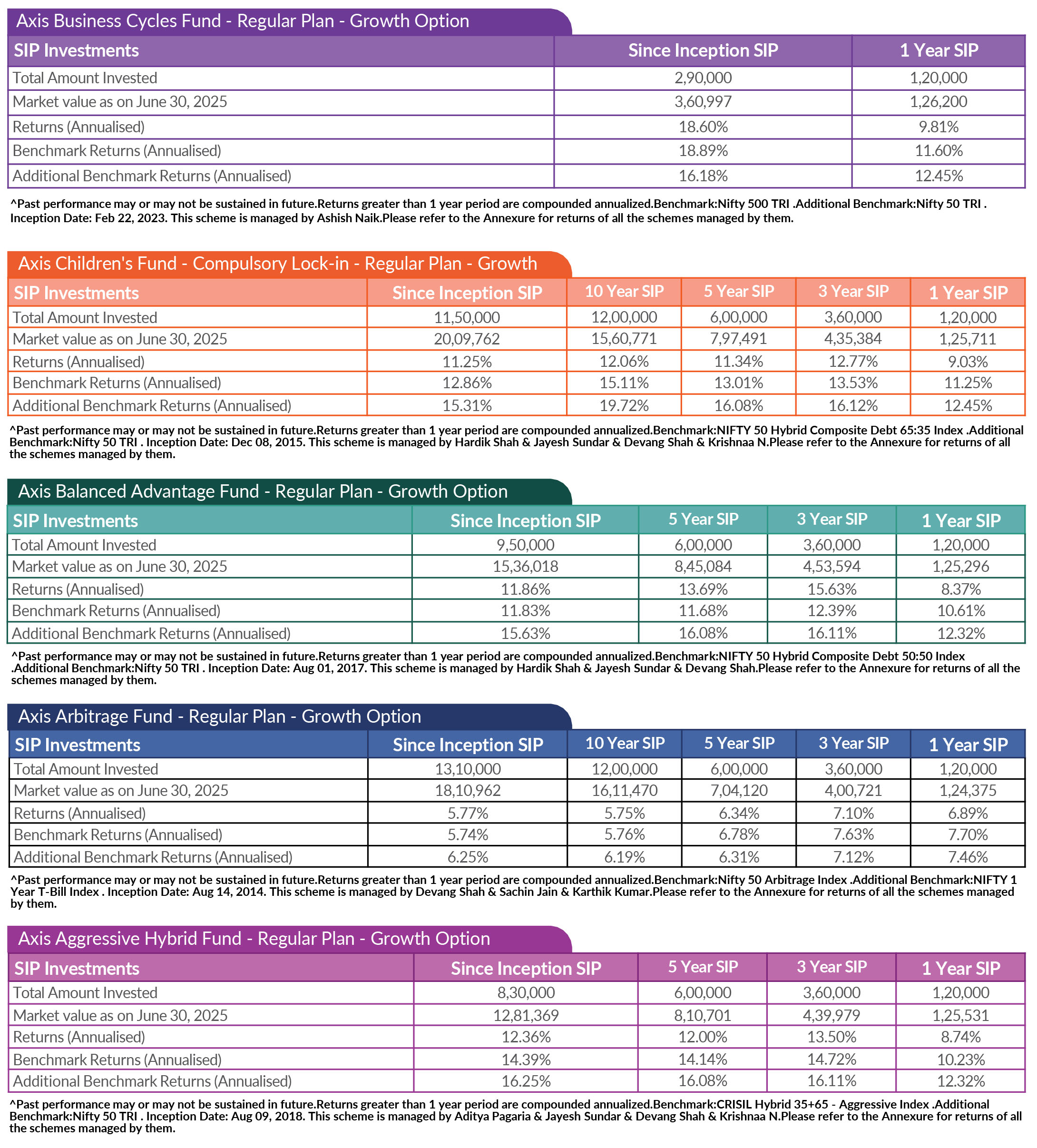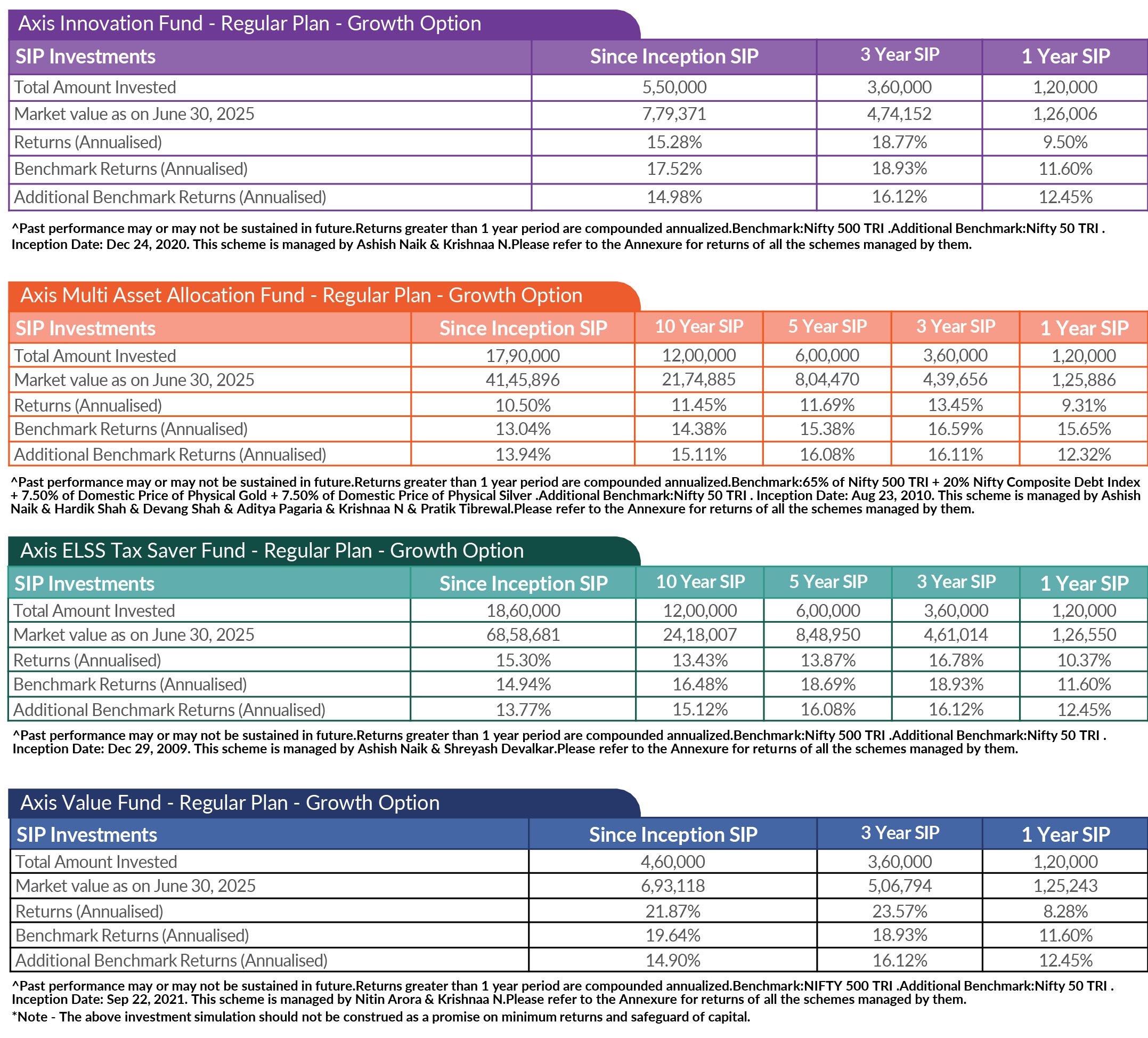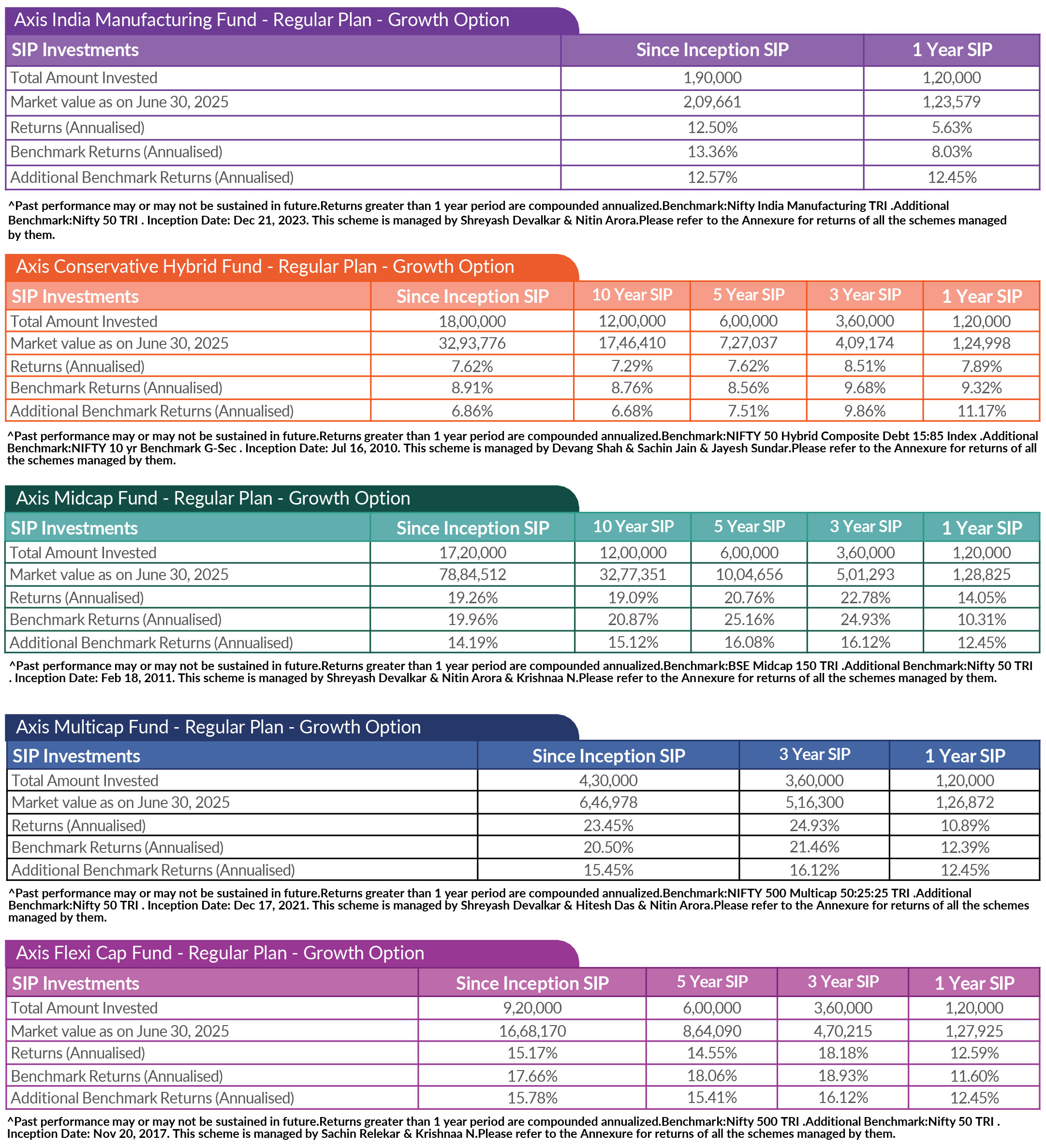 SIP PERFORMANCE OF SELECT SCHEMES (as on 30th June, 2025)