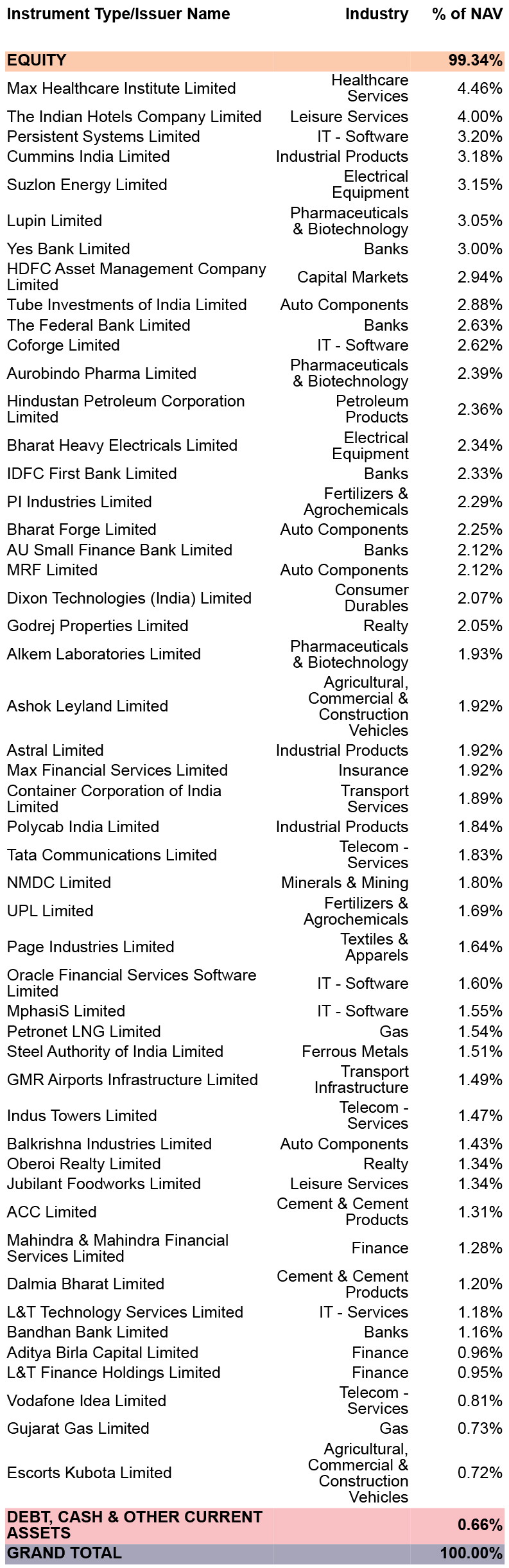 (An Open Ended Index Fund tracking the NIFTY MIDCAP 50 Index)