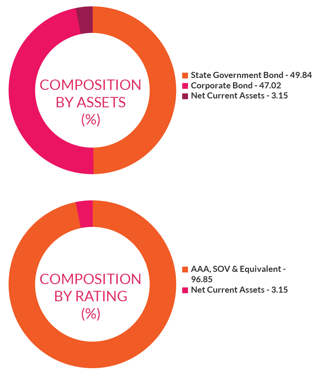 ![]() | RESIDUAL MATURITY | 1.57 years | MODIFIED DURATION* | 1.40 years | MACAULAY DURATION* | 1.48 years | Annualised Portfolio YTM * | 7.51% |