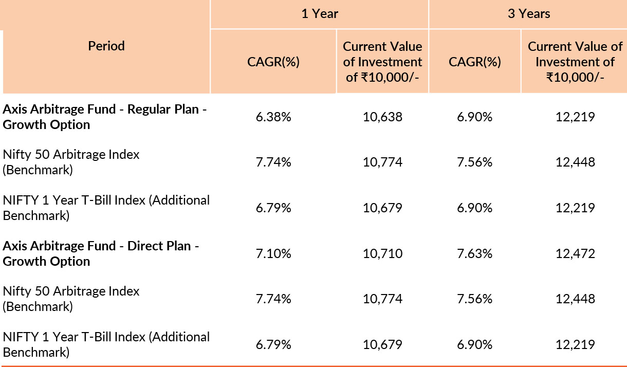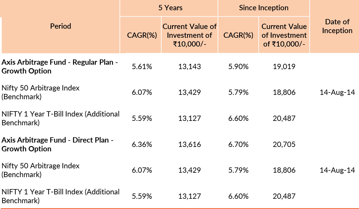 Past performance may or may not be sustained in future. Different plans have different expense structure. Karthik Kumar is managing the scheme since 3rd July 2023 and he manages 24 schemes of Axis Mutual Fund & Devang Shah is managing the scheme since 14th August 2014 and he manages 21 schemes of Axis Mutual Fund & Sachin Jain is managing the scheme since 9th November 2021 and he manages 13 schemes of Axis Mutual Fund . Please refer to annexure for performance of schemes managed by the fund managers. Returns greater than 1 year period are compounded annualised (CAGR). Face Value per unit : ₹10.