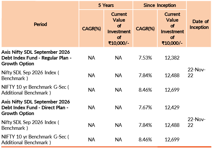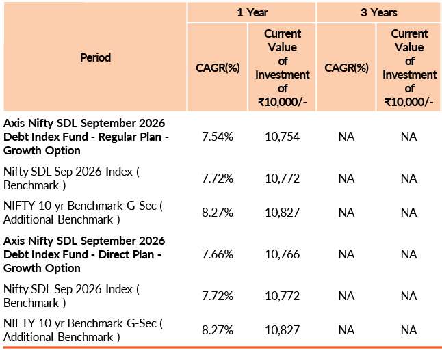 | Axis Nifty SDL September 2026 Debt Index Fund | 31-Oct-2025 | -0.18 | -- | -- | -- | -0.31 |
