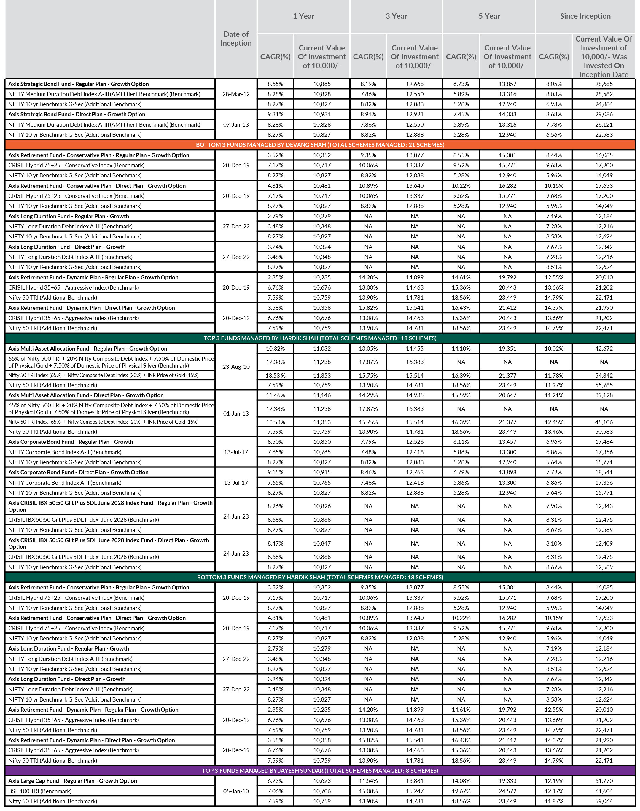 ANNEXURE FOR RETURNS OF ALL THE SCHEMES