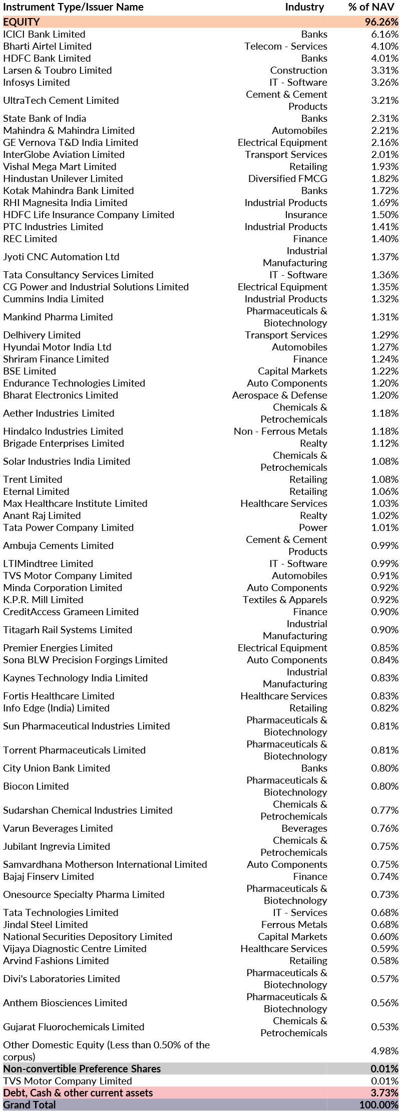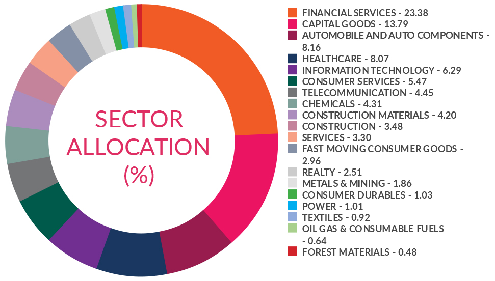 ^^Market caps are defined as per SEBI regulations as below: a. Large Cap: 1st -100th company in terms of full market capitalization. b. Mid Cap: 101st -250th company in terms of full market capitalization. c. Small Cap: 251st company onwards in terms of full market capitalization.