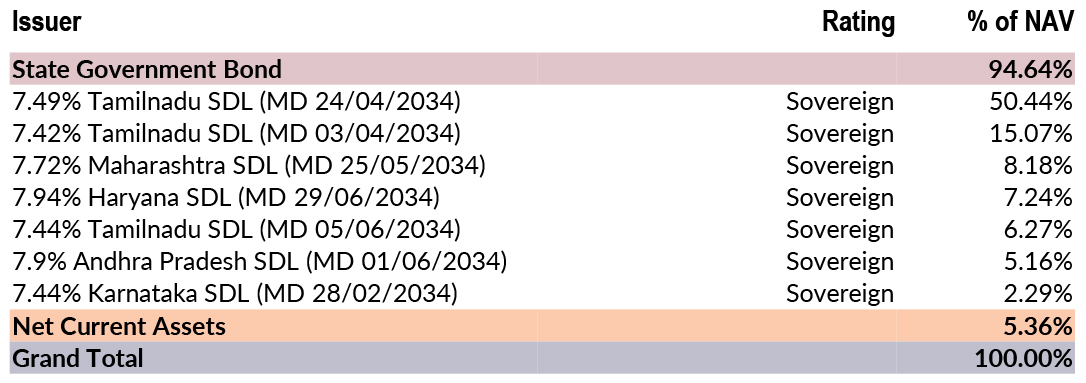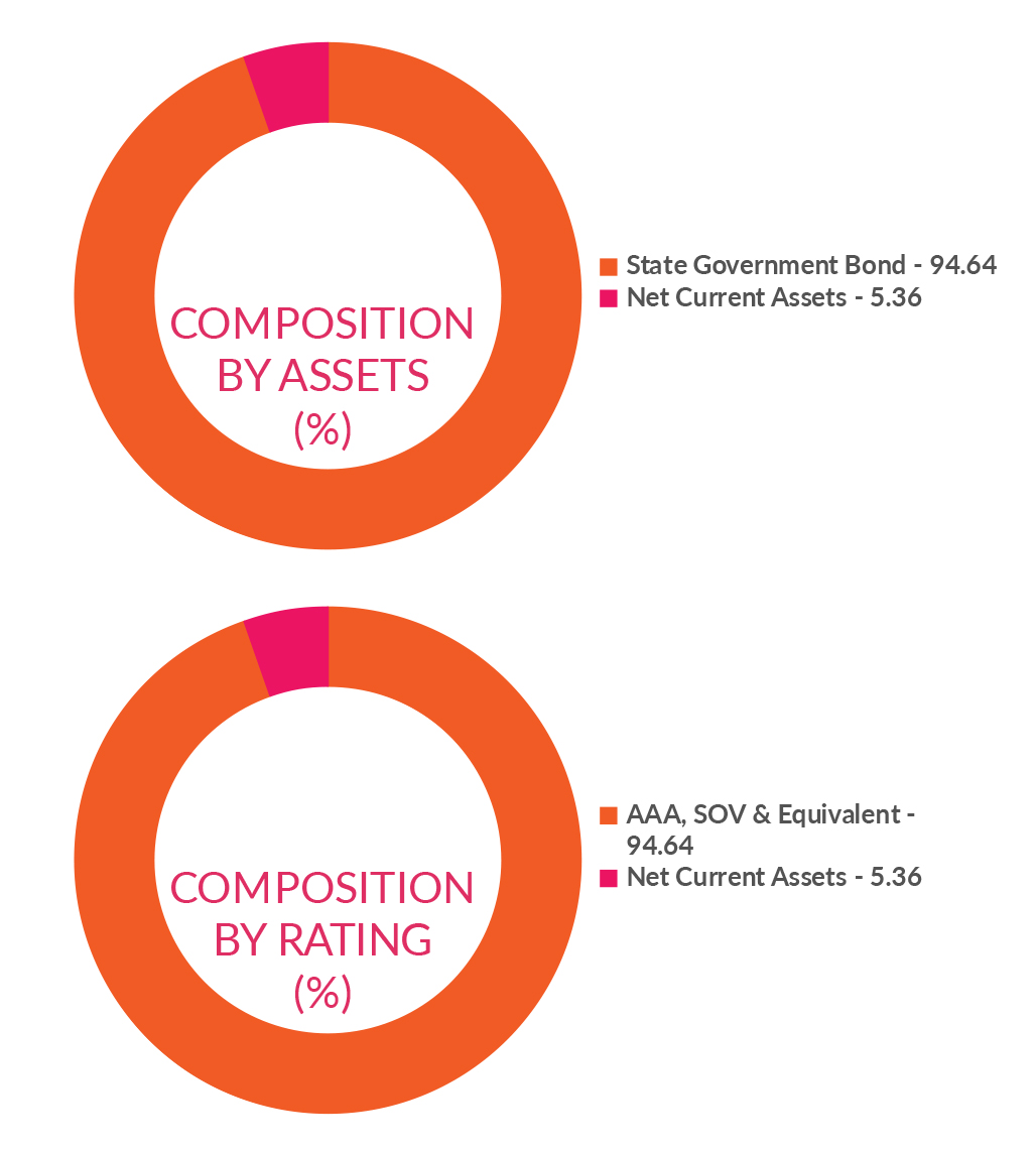 ![]() | RESIDUAL MATURITY | 8.05 years | MODIFIED DURATION* | 5.84 years | MACAULAY DURATION* | 6.05 years | Annualised Portfolio YTM * | 7.18% |