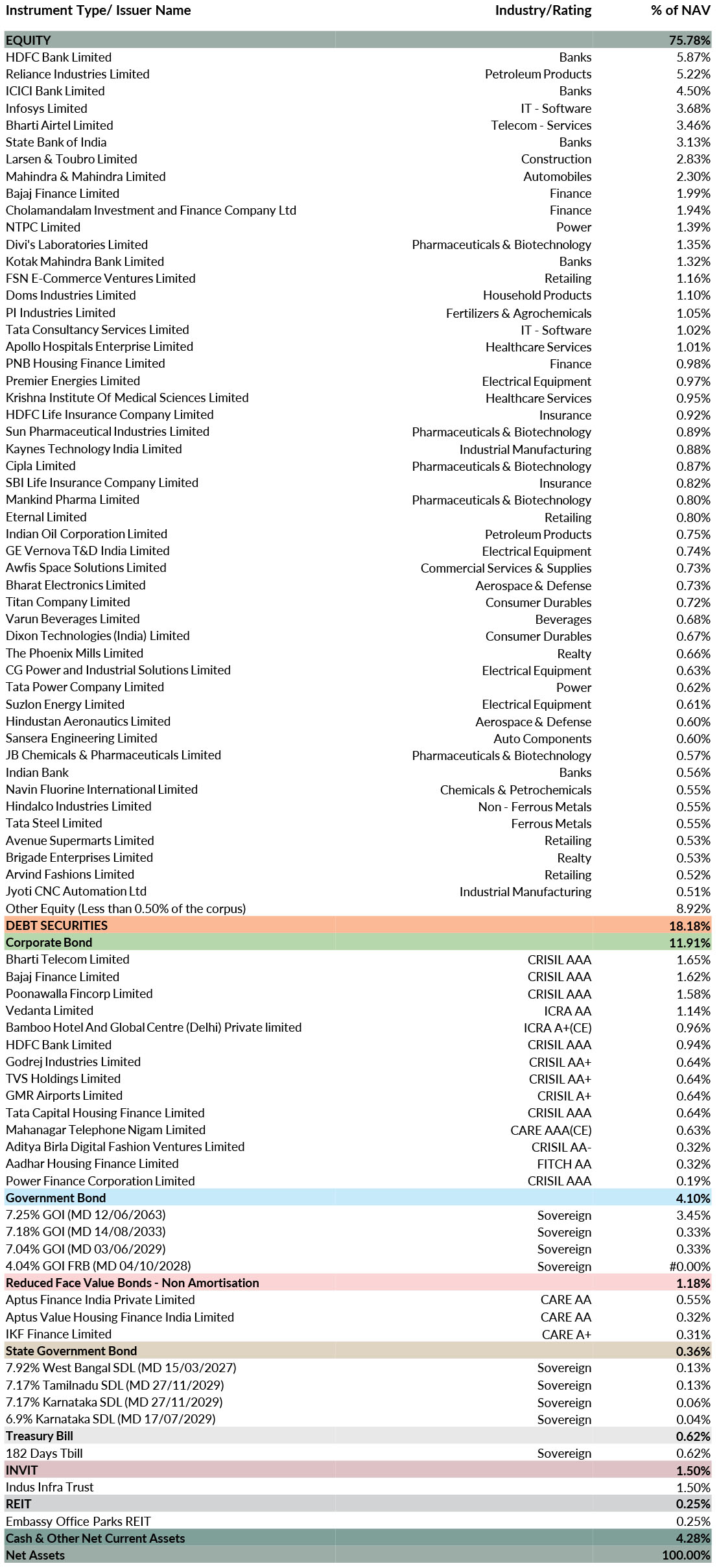 | Computed for the 3-yr period ended Oct 31, 2025. Based on month-end NAV. **Risk-free rate assumed to be 5.69% (MIBOR as on 31-10-2025) - Source: www.fimmda.org |