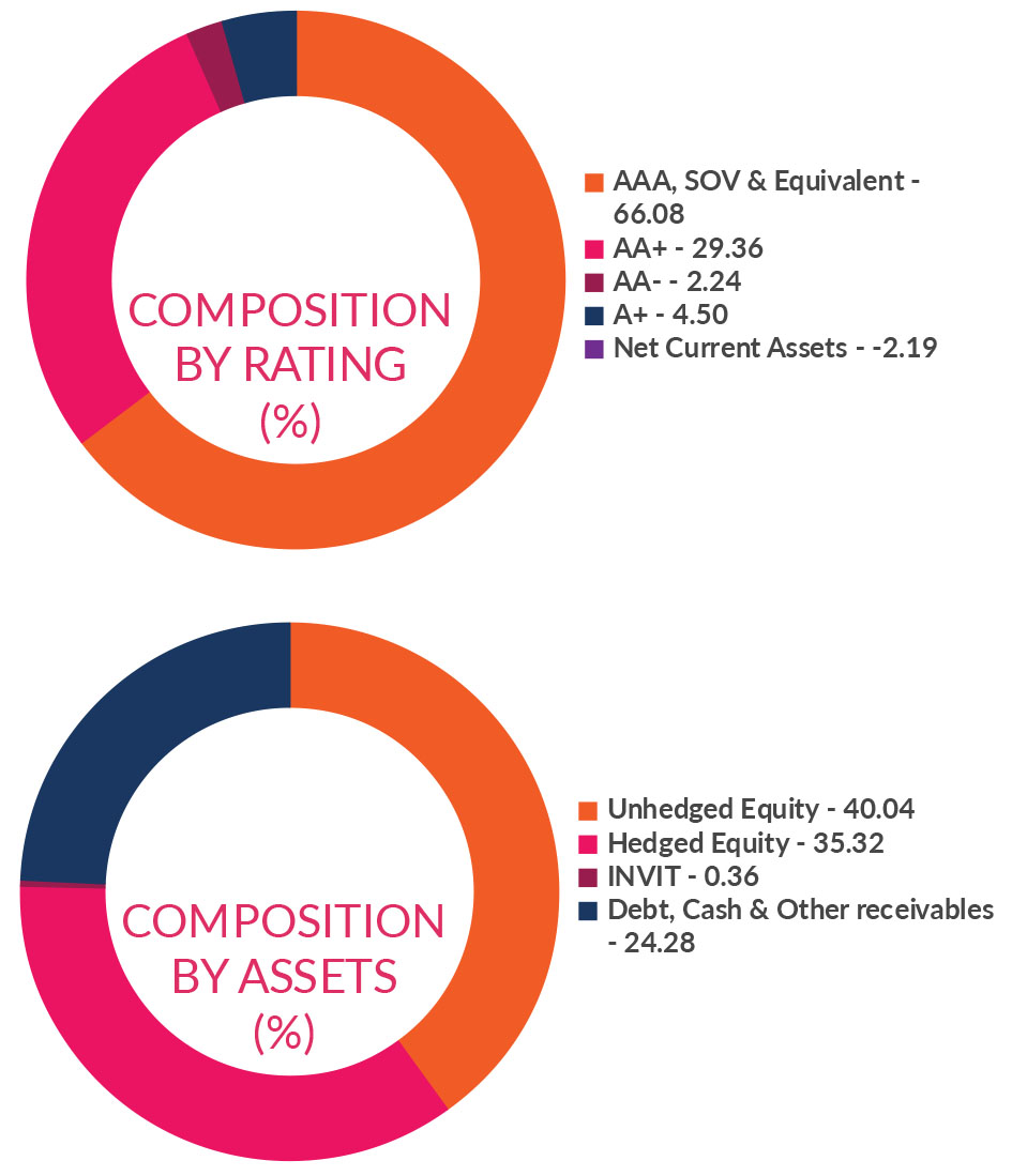 *in case of semi annual YTM, it will be annualised *As per AMFI Best Practices Guidelines Circular No. 88 / 2020 -21-Additional Disclosures in Monthly Factsheets. @ Based on debt portfolio only. For instruments with put/call option, the put/call date has been taken as the maturity date. This should not be taken as an indication of the returns that maybe generated by the fund and the securities bought by the fund may or may not be held till their respective maturities. The calculation is based on the invested corpus of the debt portfolio. | ||