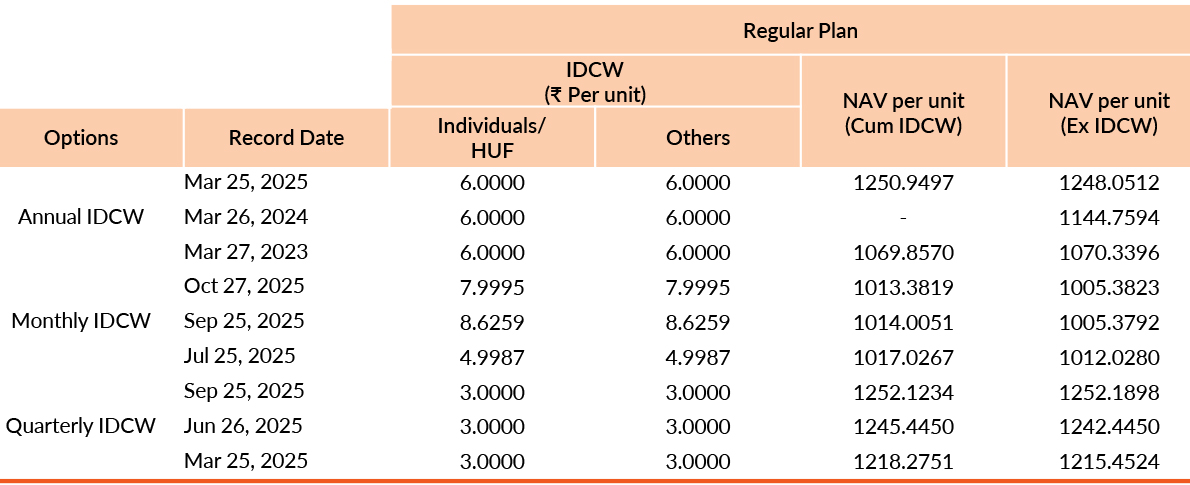 may not be sustained in future. Face value of units is ₹1000. IDCW means Income Distribution cum Capital Withdrawal.