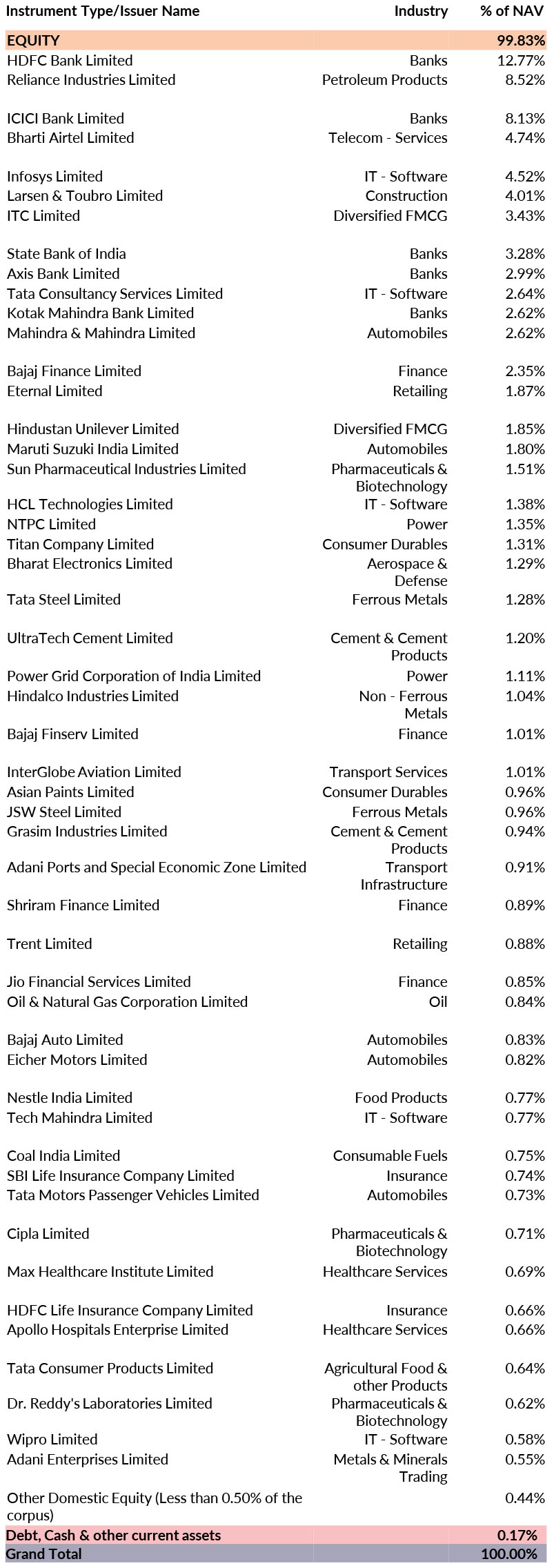 (An open ended scheme replicating / tracking Nifty 50 TRI)