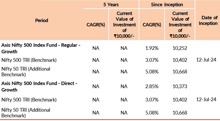 Past performance may or may not be sustained in future.Different plans have different expense structure. Karthik Kumar is managing the scheme since 16th July 2024 and he manages 24 schemes of Axis Mutual Fund .Please refer to annexure for performance of all schemes managed by the fund manager. Returns greater than 1 year period are compounded annualised (CAGR). Face Value per unit : ₹ 10.