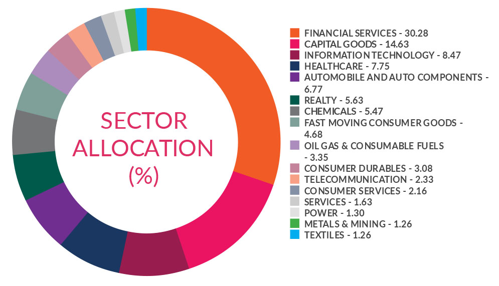 ^^Market caps are defined as per SEBI regulations as below: a. Large Cap: 1st -100th company in terms of full market capitalization. b. Mid Cap: 101st -250th company in terms of full market capitalization. c. Small Cap: 251st company onwards in terms of full market capitalization.
