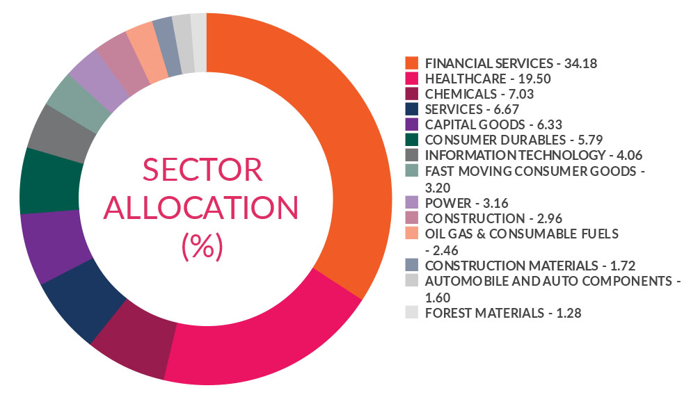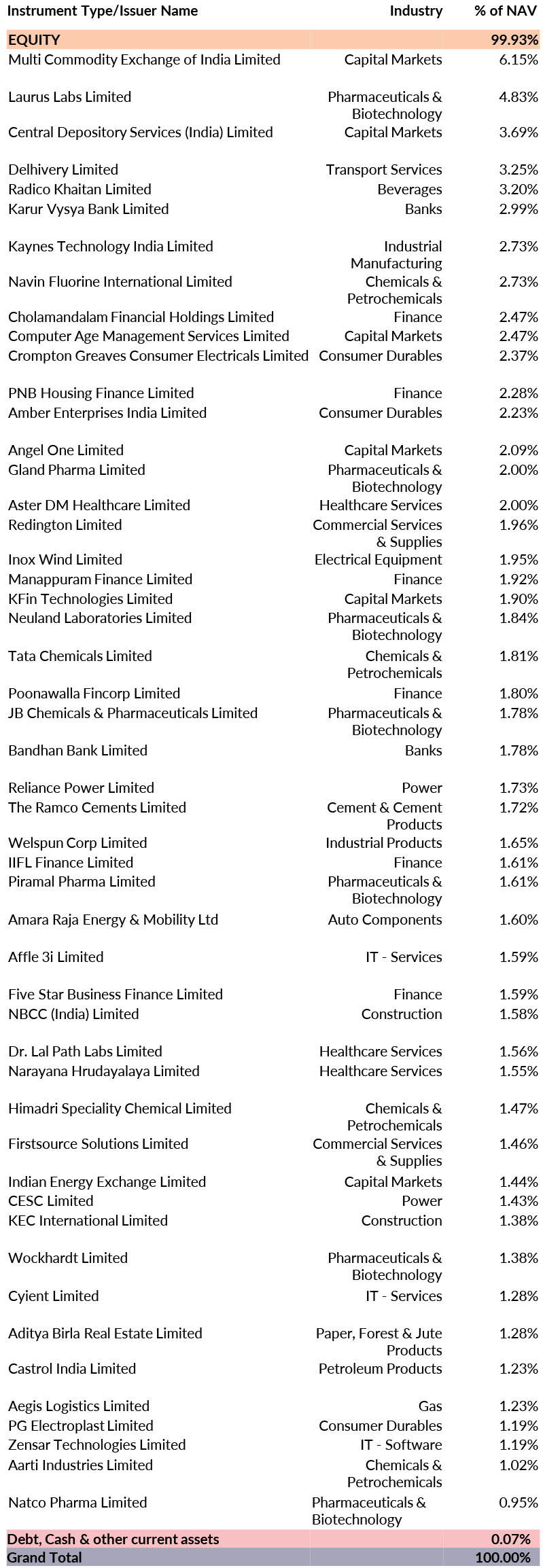 ^^Market caps are defined as per SEBI regulations as below: a. Large Cap: 1st -100th company in terms of full market capitalization. b. Mid Cap: 101st -250th company in terms of full market capitalization. c. Small Cap: 251st company onwards in terms of full market capitalization.