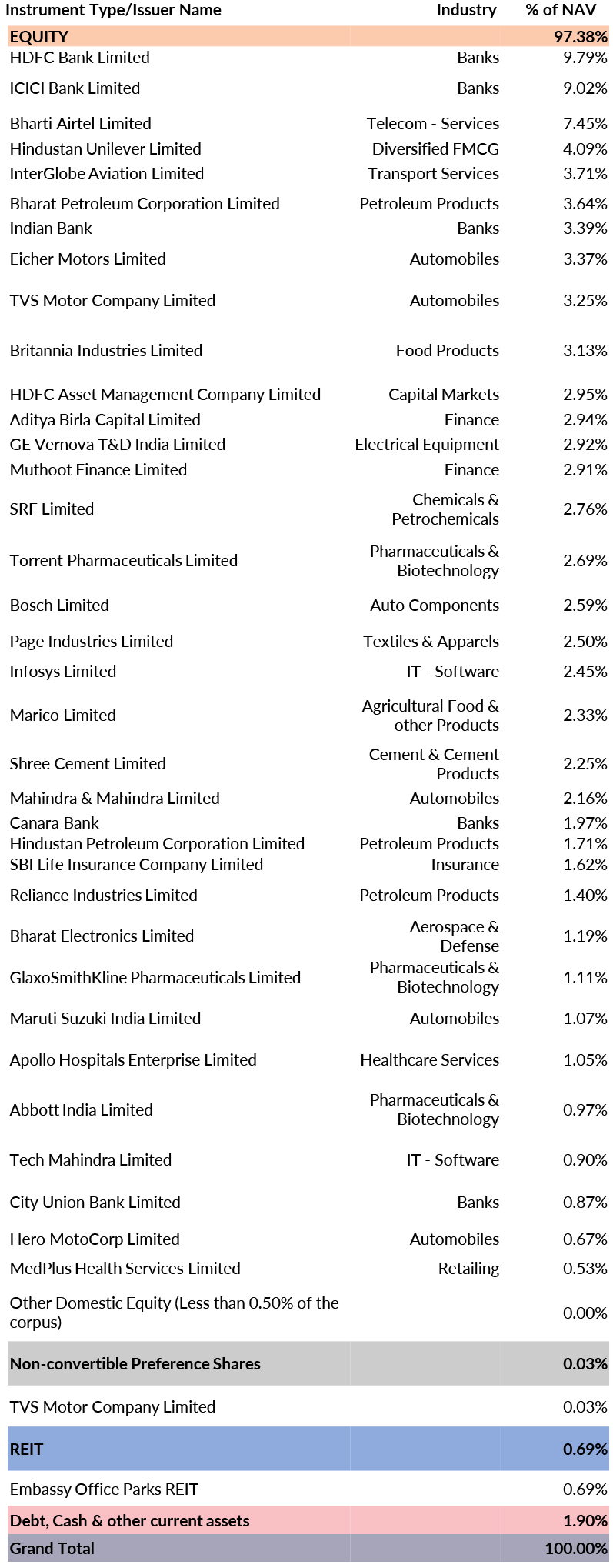^^Market caps are defined as per SEBI regulations as below: a. Large Cap: 1st -100th company in terms of full market capitalization. b. Mid Cap: 101st -250th company in terms of full market capitalization. c. Small Cap: 251st company onwards in terms of full market capitalization.