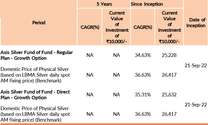 Past performance may or may not be sustained in future. Different plans have different expense structure. Aditya Pagaria is managing the scheme since 21st September 2022 and he manages 22 schemes of Axis Mutual Fund & Pratik Tibrewal is managing the scheme since 1st February 2025 and he manages 5 schemes of Axis Mutual Fund . Please refer to annexure for performance of all schemes managed by the fund manager. Returns greater than 1 year period are compounded annualised (CAGR). Face Value per unit : ₹ 10.
