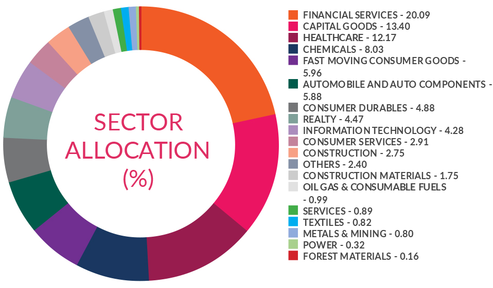 ^^Market caps are defined as per SEBI regulations as below: a. Large Cap: 1st -100th company in terms of full market capitalization. b. Mid Cap: 101st -250th company in terms of full market capitalization. c. Small Cap: 251st company onwards in terms of full market capitalization.