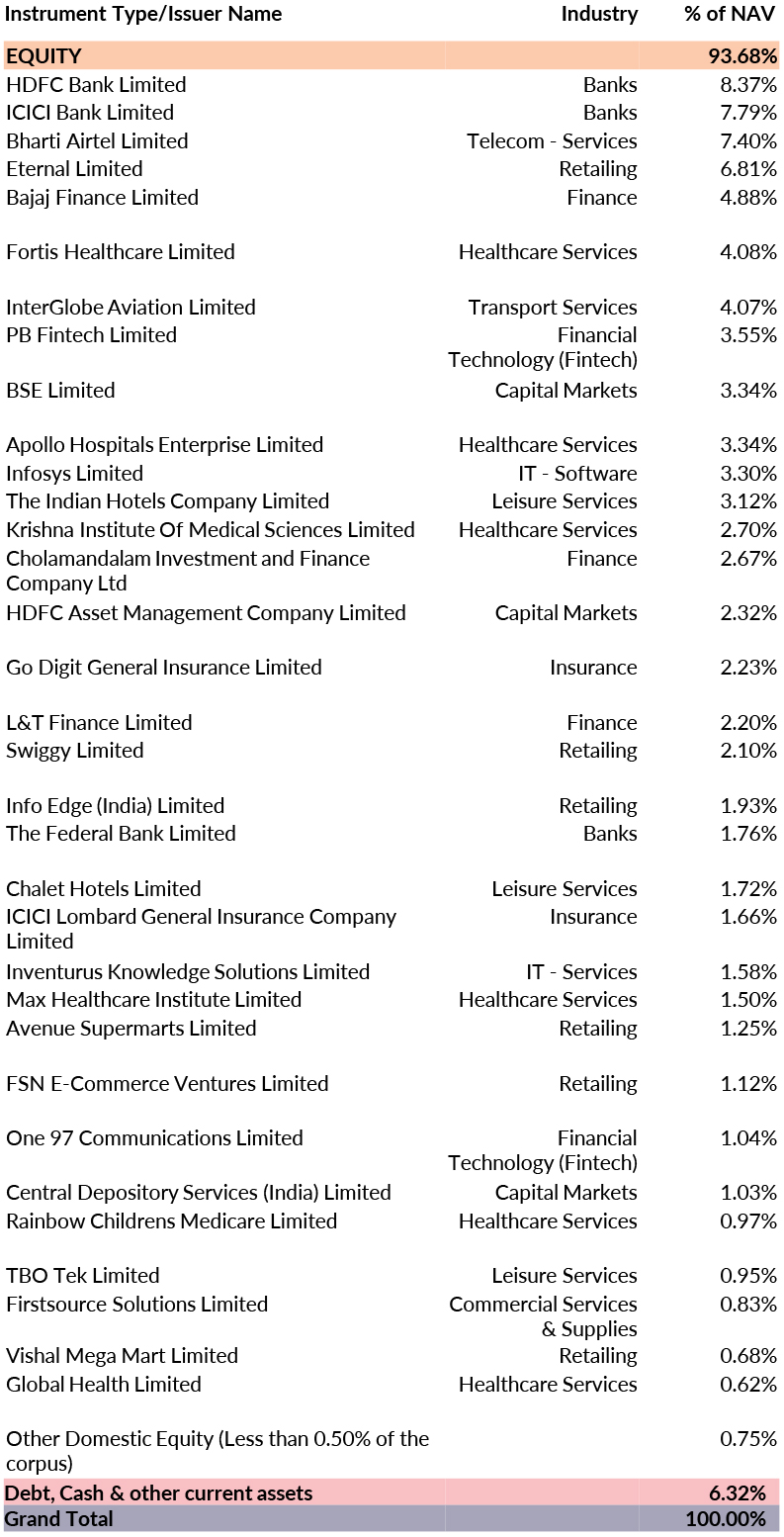^^Market caps are defined as per SEBI regulations as below: a. Large Cap: 1st -100th company in terms of full market capitalization. b. Mid Cap: 101st -250th company in terms of full market capitalization. c. Small Cap: 251st company onwards in terms of full market capitalization.