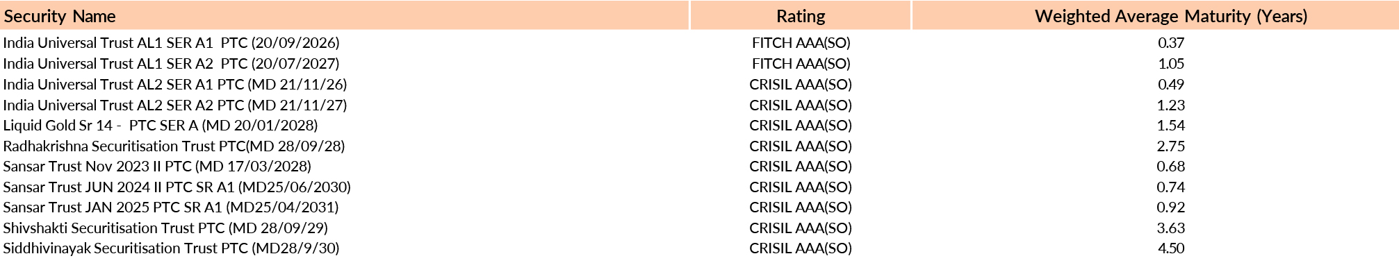 | * As per AMFI Best Practices Guidelines Circular No. 88 / 2020 -21-Additional Disclosures in Monthly Factsheets. For instruments with put/call option, the put/call date has been taken as the maturity date. This should not be taken as an indication of the returns that maybe generated by the fund and the securities bought by the fund may or may not be held till their respective maturities. The calculation is based on the invested corpus of the debt portfolio. | ||