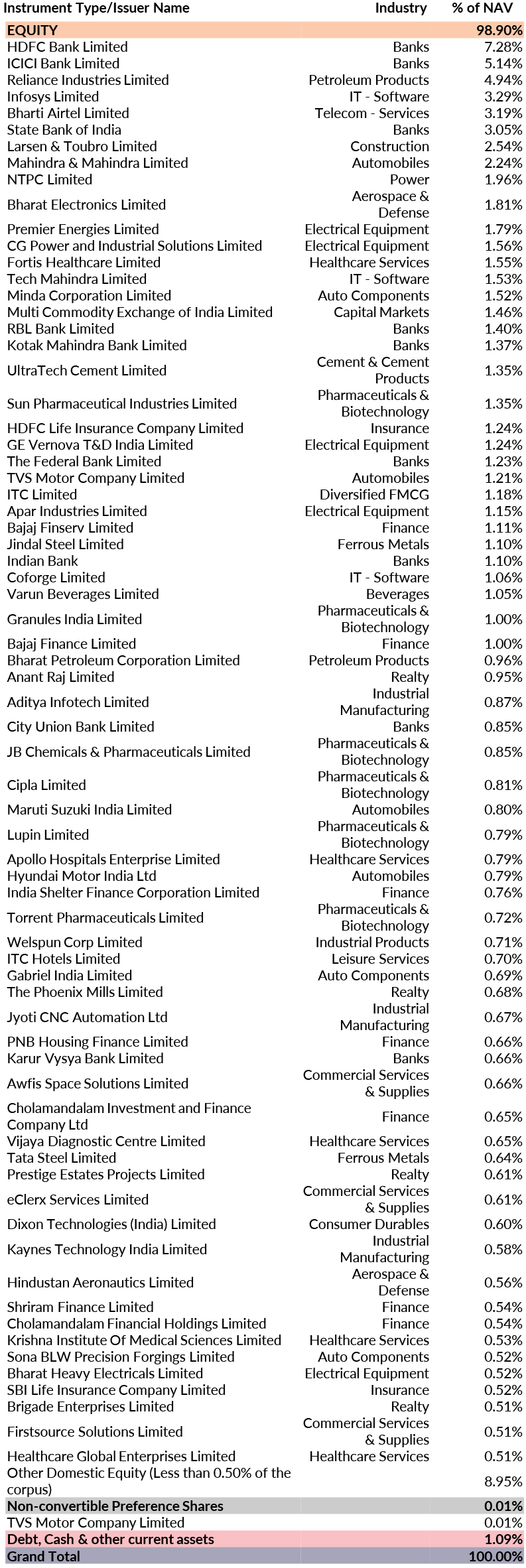 ^^Market caps are defined as per SEBI regulations as below: a. Large Cap: 1st -100th company in terms of full market capitalization. b. Mid Cap: 101st -250th company in terms of full market capitalization. c. Small Cap: 251st company onwards in terms of full market capitalization.