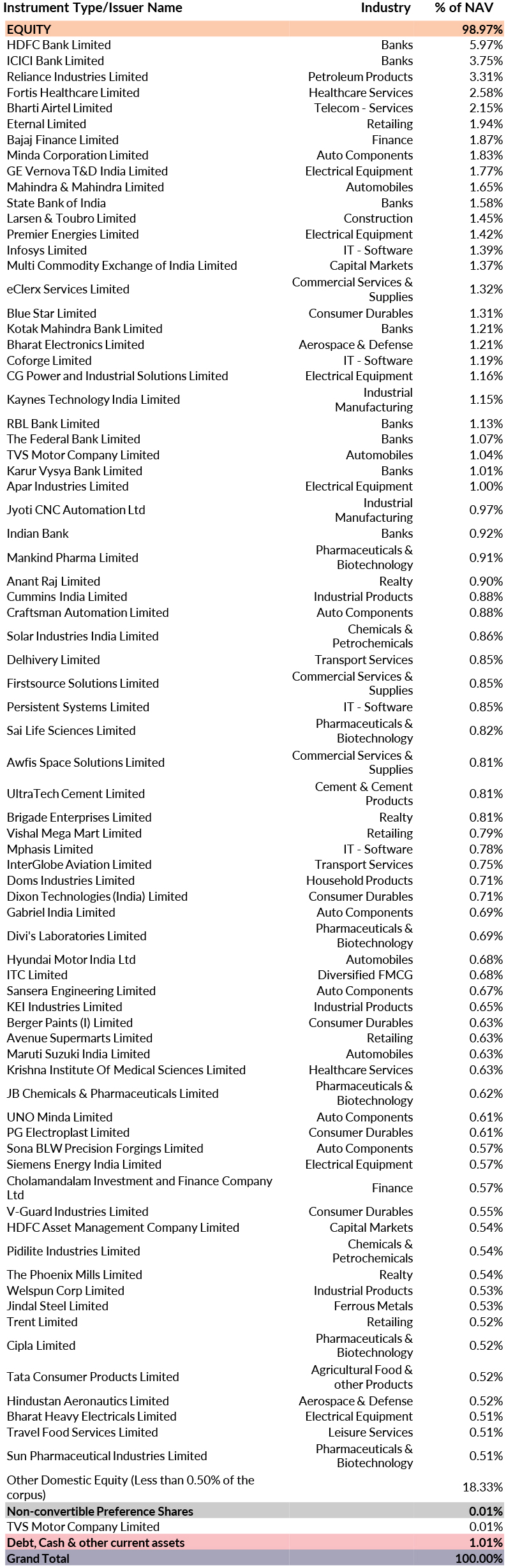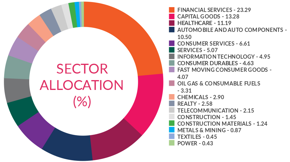 ^^Market caps are defined as per SEBI regulations as below: a. Large Cap: 1st -100th company in terms of full market capitalization. b. Mid Cap: 101st -250th company in terms of full market capitalization. c. Small Cap: 251st company onwards in terms of full market capitalization.