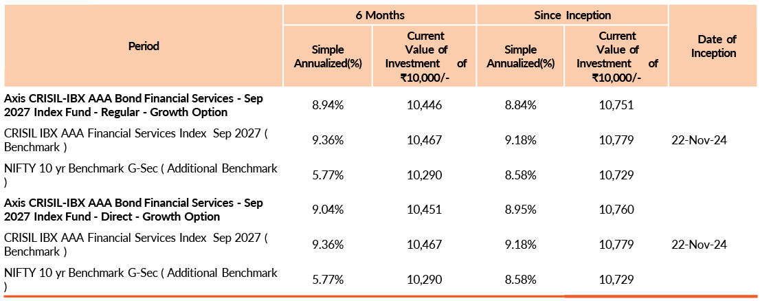 | AXIS CRISIL-IBX AAA Bond Financial Services - Sep 2027 Index Fund | 30-Sep-2025 | - | - | - | - | -0.34 |