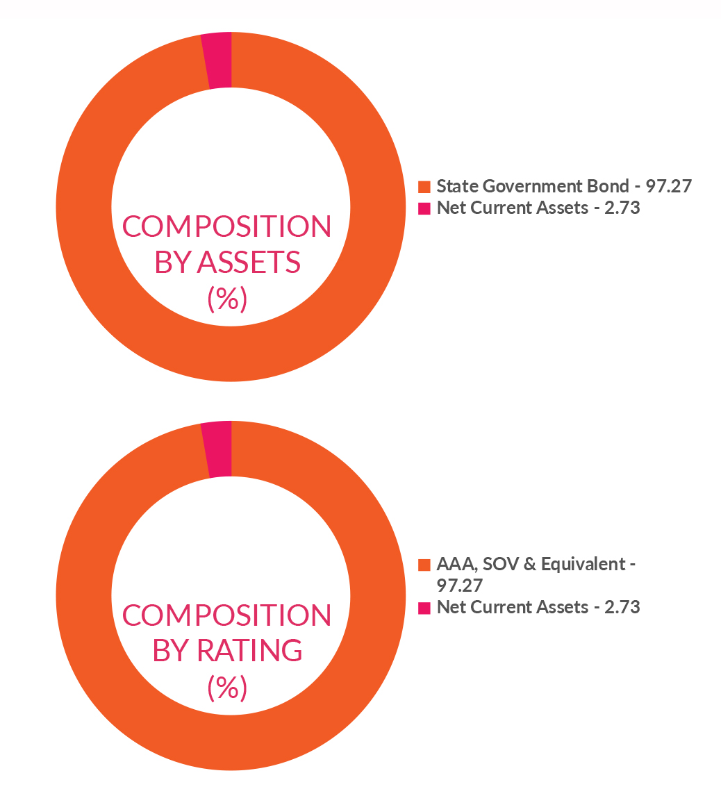 ![]() | RESIDUAL MATURITY* | 1.53 years | MODIFIED DURATION* | 1.41 years | MACAULAY DURATION* | 1.45 years | Annualised Portfolio YTM * | 6.25% |