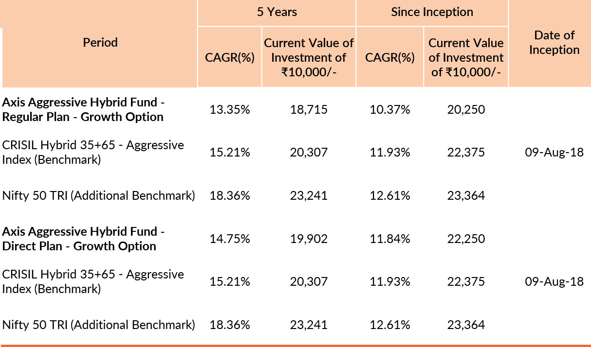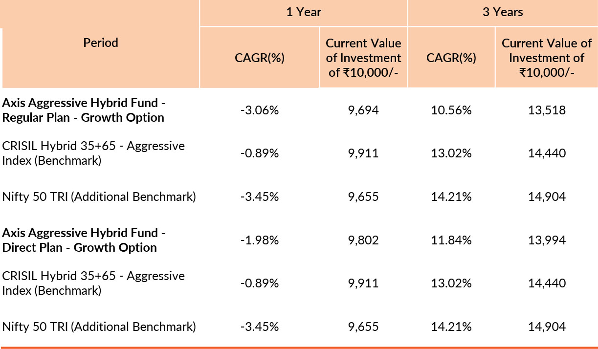 Past performance may or may not be sustained in future. Different plans have different expense structure. Jayesh Sundar is managing the scheme since 28th September 2023 and he manages 8 schemes of Axis Mutual Fund & Devang Shah is managing the scheme since 5th April 2024 and he manages 21 schemes of Axis Mutual Fund & Aditya Pagaria is managing the scheme since 1st February 2023 and he manages 22 schemes of Axis Mutual Fund & Krishnaa N is managing the scheme since 16th December 2024 and she manages 24 schemes of Axis Mutual Fund . Please refer to annexure for performance of all schemes managed by the fund managers. Returns greater than 1 year period are compounded annualised (CAGR). Face Value per unit : ₹10.